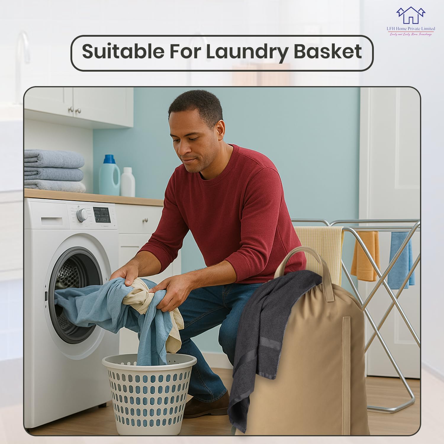 LFH Home Cotton Canvas Large Laundry Bag with Handle, Heavy Duty Drawstring Closure Washable Laundry Bags, School Travel, Home, Hotel, College Dorm, Organizer Sack, Toys Clothes 24x36-Beige