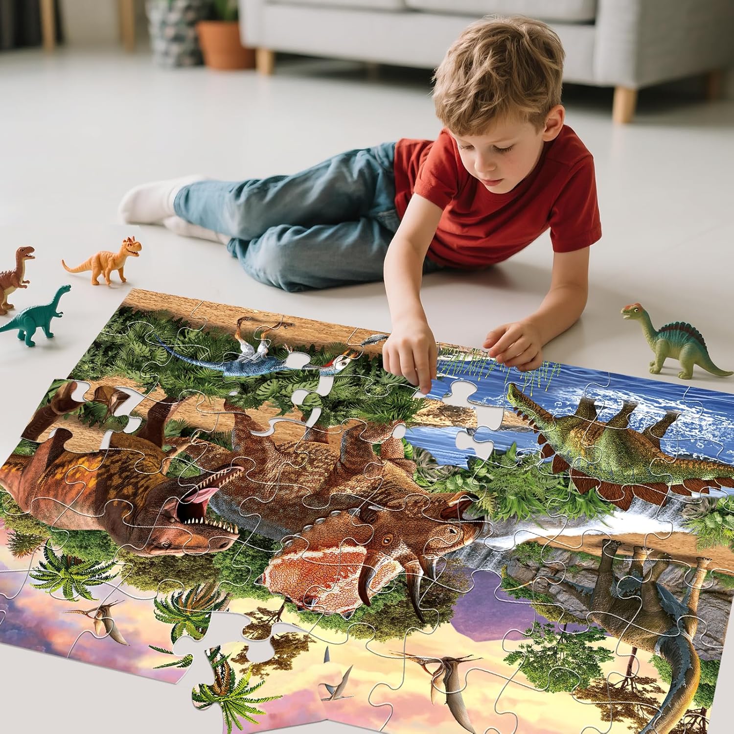- Excellent Gift for Kids:This dinosaur jigsaw puzzle is an ideal gift for various festivals such as birthday,Thanksgiving,Christmas,Easter.When children finally piece together the complete picture,the joy they feel will make them more willing to try new things.Every time they look at it,they will remember that it is a gift they completed on their own,which is more meaningful that ordinary gifts