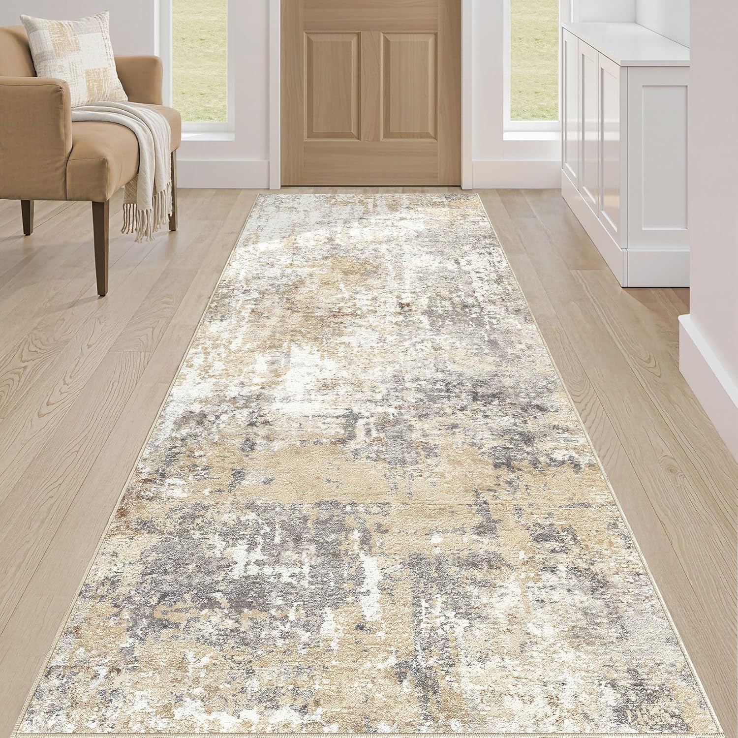 Runner Rug Kitchen Washable Rugs: 2x6 Non-Slip Abstract Soft Modern Stain Resistant Indoor Floor Neutral Accent Throw Carpet for Hallway Bathroom Laundry Room Entryway Bedroom- Gray Gold