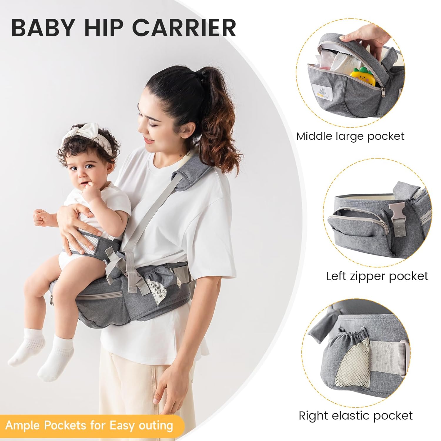 Baby Carrier with Hip Seat Adjustable Strap Huge Storage 4-in-1Toddler Carrier Enhanced Lumbar Support Ergonomic Baby Hip Carrier for Newborns & Toddlers Gray