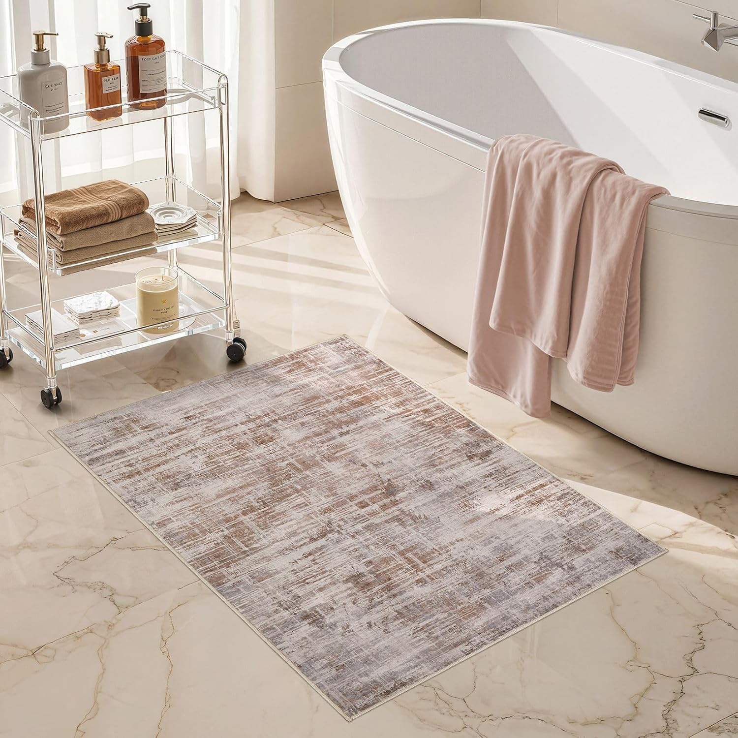 2x3 Entryway Area Rugs: Washable Neutral Abstract Small Rug Door Mat Non-Slip Soft Low Pile Indoor Carpe for Entrance Kitchen Front Door Bathroom Entry Kids Room - Red Brown