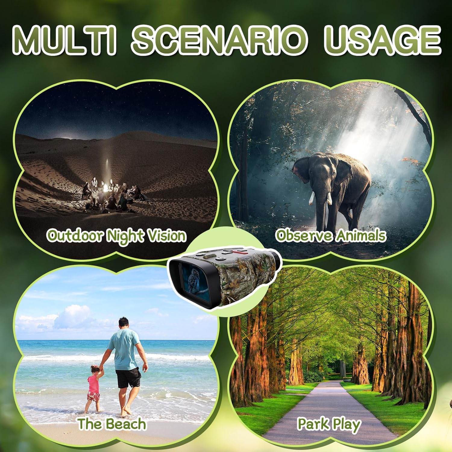 - High definition 1080P video camera: This Night Vision Goggles for kids is equipped with a 2.4-inch high-definition display screen; The 1080P video camera function can record exciting moments of children's growth. Whether indoors or outdoors, good images can be captured.
