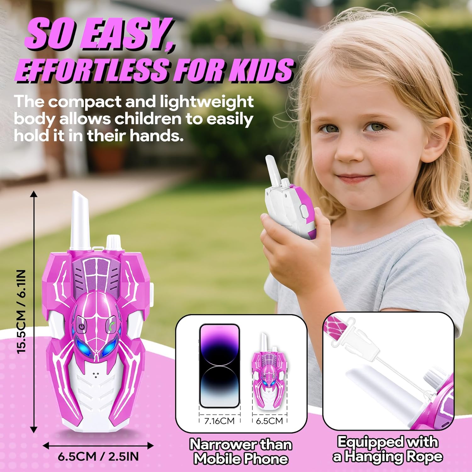 - Spider Walkie Talkies: Inspired by superhero role-play, these kids walkie talkies feature a fun spider theme loved by kids. Lightweight at just 100g, they are perfect outdoor toys for kids ages 3-12, whether exploring the backyard or on a camping trip
