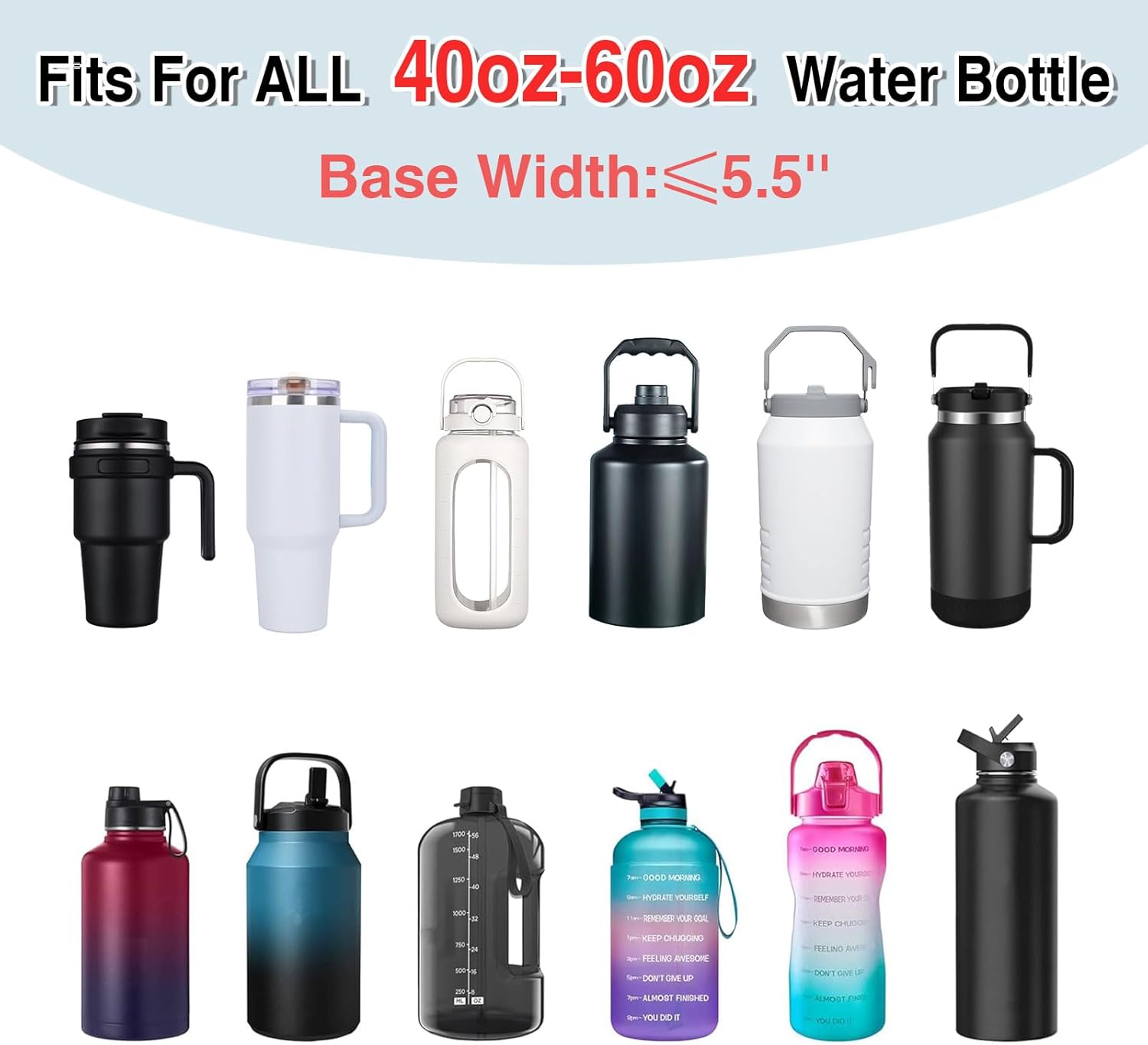 - 【Closed Drawstring Design Protects Your Bottles】Adopts drawstring design to hold bottles tightly and securely. The water bottle holder with strap measures 5.7 x 5.7 x 11.75’’ and is designed to hold vacuum bottles, sports bottles and various brands of milk bottles, fits a variety of 40 oz-60oz(base width: <5.5") size bottle. It can effectively protects water bottles from vibration and drops, avoiding bumps and damage. It is your ideal outdoor water bottle accessory.