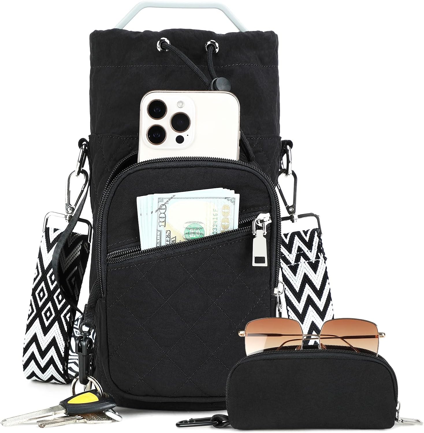 - 【Multiple Pockets + Sunglasses Pouch】AGLOD water bottle holder includes 1 bottle pocket, 2 zipper pockets, 1 phone pocket, 4 card slots, 1 grid back zipper and 1 inner key hook. Zippers secure belongings, keeping items organized. It eliminates the need for extra bags during hiking, cycling, running, gym sessions, etc. Also comes with a wallet for glasses, ID, cards, badges, coins, lipstick and small items.