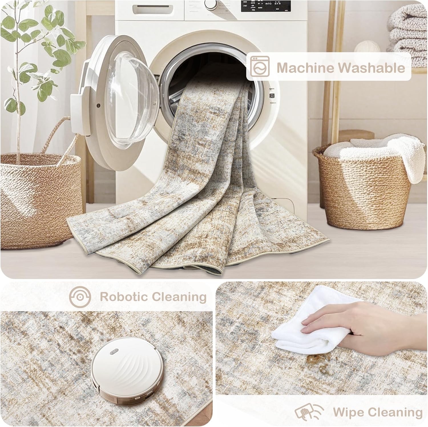 - Anti-Stain Low Pile Rug: Our washable rugs surface pile are short and dense, can block dust and hair embedded, spilled drinks coffee and other liquids will not penetrate into the neutral rug inside; Our 6'x9' large rug is moderately thick and won't snag on doors, which not only keeps indoor rugs clean, but also adds convenience for high traffic areas.