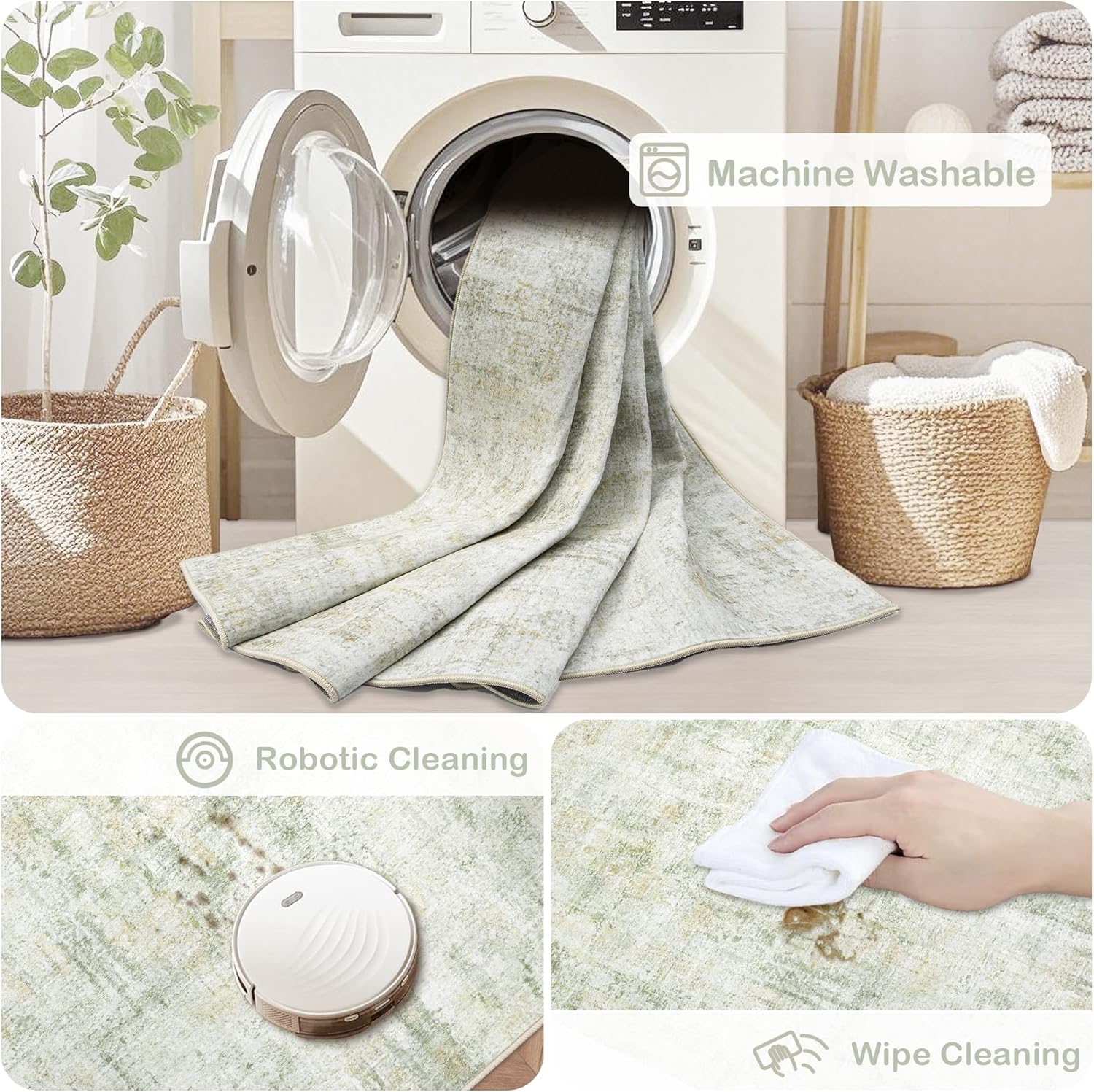 Area Rugs 5x7 Living Room: Washable Rug Modern Abstract Rugs Soft Non Slip Neutral Rug Stain Resistant Indoor Carpet for Bedroom Kitchen Dining Room Nursery Home Office Rugs(Green Brown,5'x7')