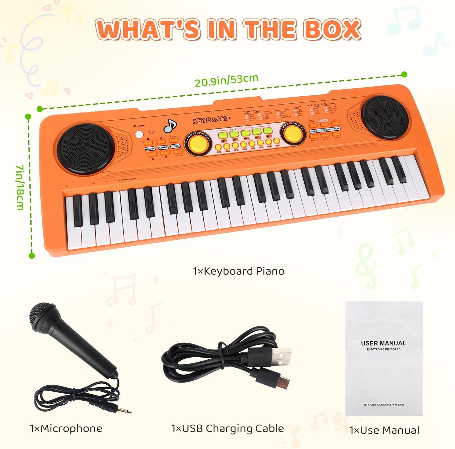 - Educational Kids Piano Keyboard: This 49-key toy piano features 6 demo songs, 8 rhythms, and 16 tones, 5 percussions, sparking creativity while teaching basic music skills. Perfect for young beginners!
