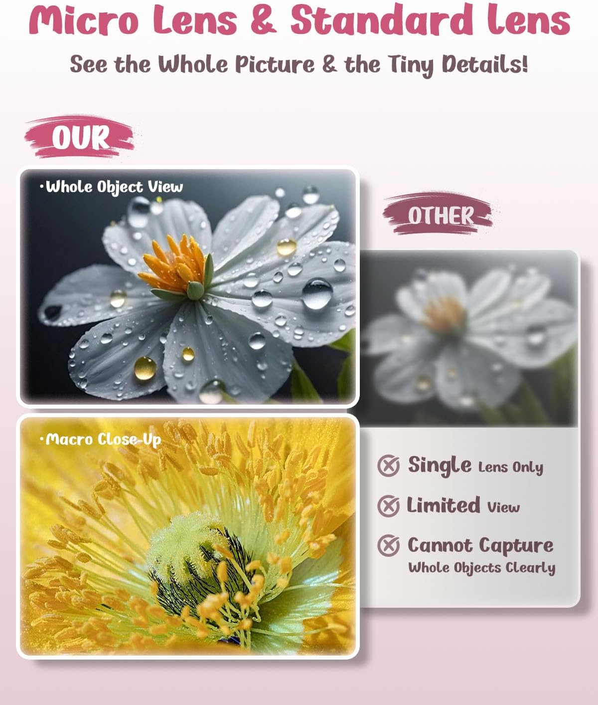 - 【Portable & Handheld Design】The kids microscope handheld is made for little hands! Auto-focus instantly sharpens the image, so kids get clear views even if their grip isn't perfectly steady. Suitable for beginners, and a huge boost in confidence that fuels a real love for science!