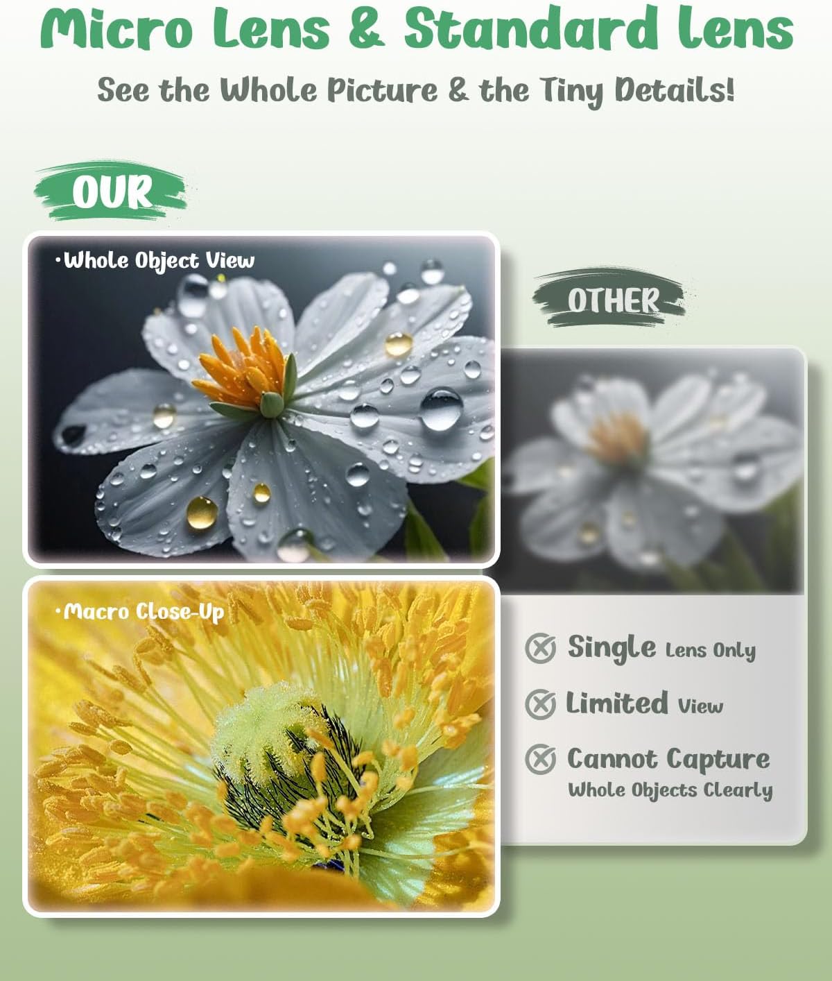 - 【2-IN-1 Kids Microscope Camera】The digital microscope also can be a kids camera!Unlocks both the micro and macro world, fueling scientific curiosity about everything around them.With 1000x magnification and 16x zoom, kids can explore plants, insects, coins, jewelry, stamps, etc.