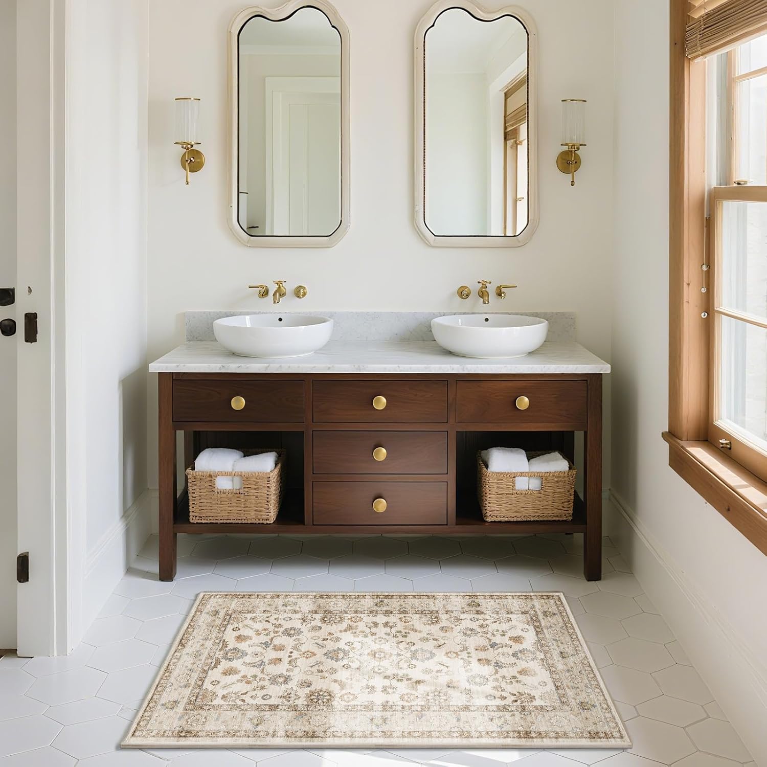 Machine Washable Small Rugs for Kitchen: Door Mat Indoor Entrance 2x3 Entryway Rug Stain Resistant Non-Slip Low Pile Soft Throw Carpet for Front Door Indoor Entrance Entry Bedroom Nursey