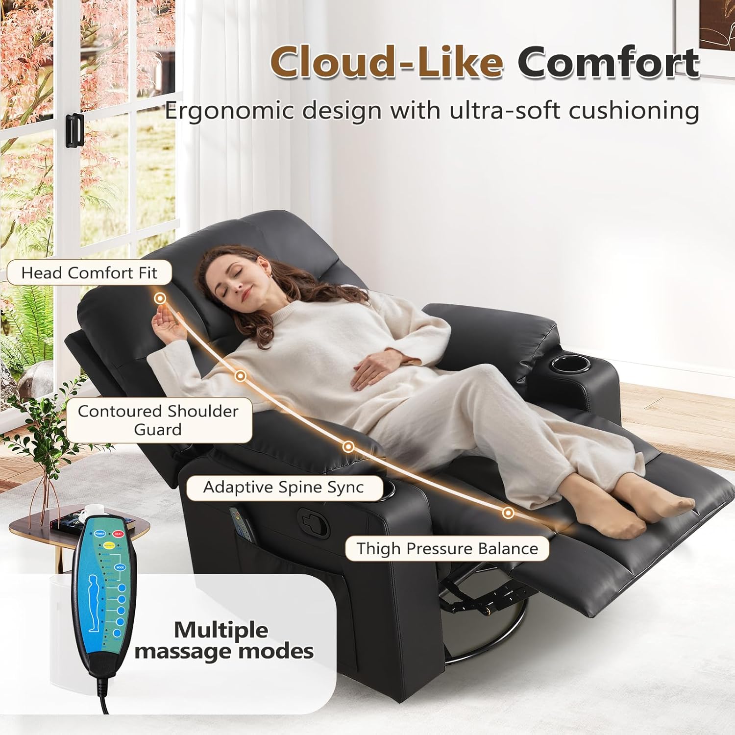 - COMFORT FEATURES: Includes massage and heating functions, thick cushioning, and whisper-quiet operation for a relaxing experience