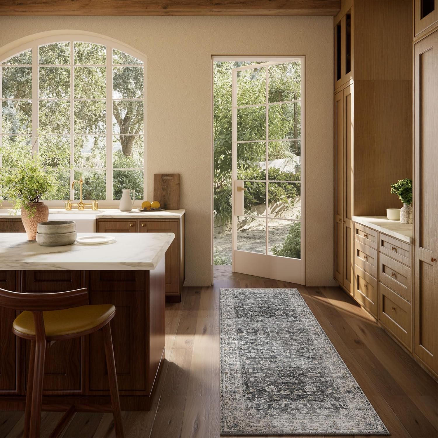 Runner Rug Washable Kitchen Runner: 2'6"x8' Hallway Runner Rugs Stain Resistant Non Slip Low Pile Soft Boho Carpet Runners for Hallways Bedroom Entryway Indoor Beside Bathroom Laundry Room