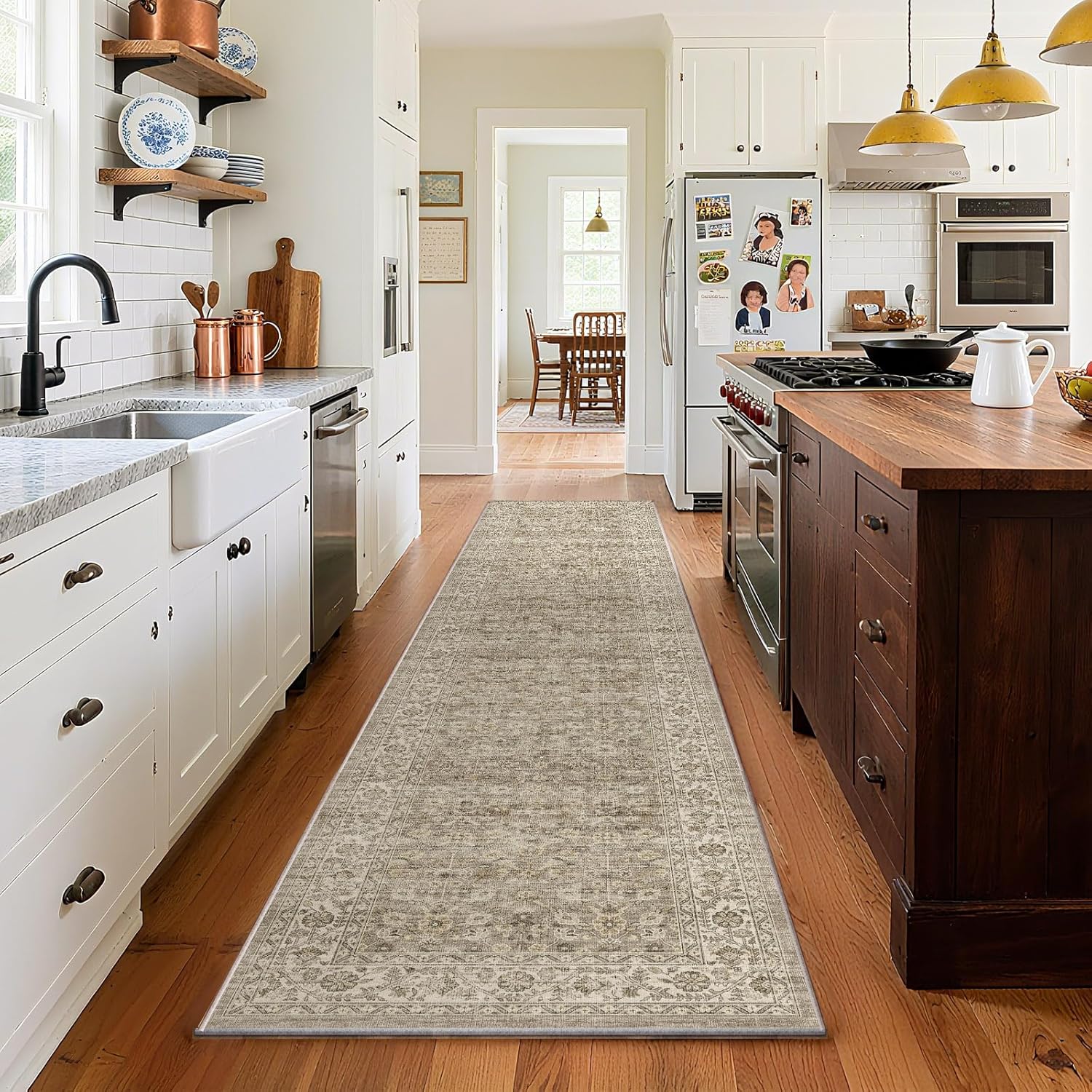 Machine Washable Kitchen Runner Rugs: 2'x10' Hallway Rug Stain Resistant Non Slip Low Pile Soft Carpet Runners for Hallways Indoor Entryway Kitchen Laundry Room Bedroom Bathroom Farmhouse
