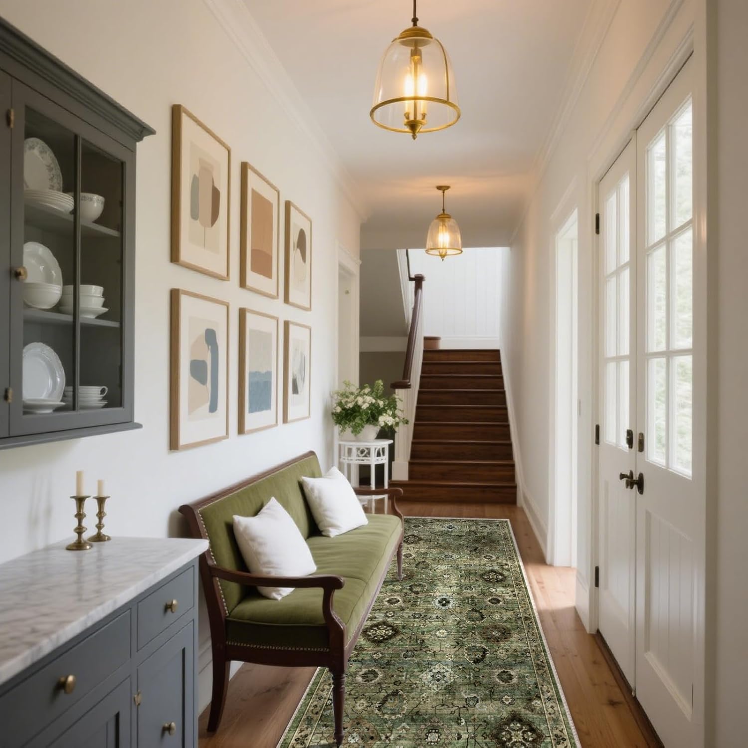 Washable Runners for Hallways Kitchen Rugs: 2'x10' Runner Rug Stain Resistant Non Slip Low Pile Soft Carpet Runners for Hallways Bedroom Kitchen Entryway Indoor Laundry Room Farmhouse
