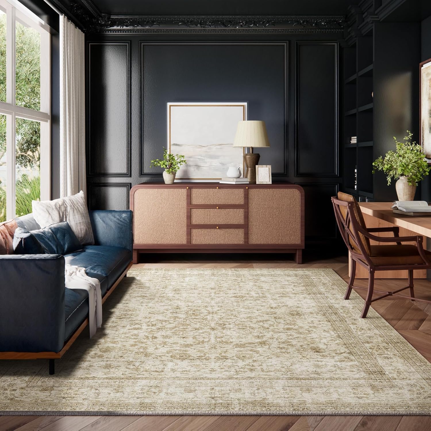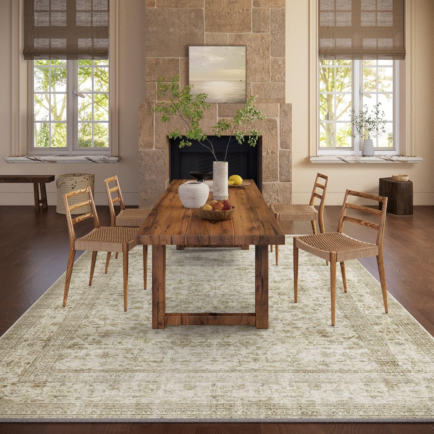 Machine Washable Rugs for Living Room: 6x9 Area Rugs for Bedroom Boho Vintage Rugs Stain Resistant Non Slip Low Pile Soft Lightweight Carpet for Kitchen Dining Room Farmhouse Nursery Kids Room