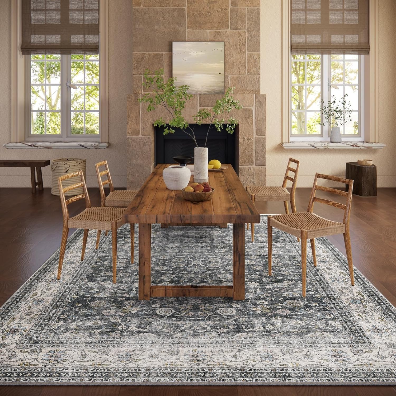Machine Washable Rugs for Living Room: 5x7 Bedroom Rug Vintage Boho Area Rug Stain Resistant Non Slip Low Pile Lightweight Soft Carpets for Living Room Dining Room Kitchen Nursery Kids Room Farmhouse