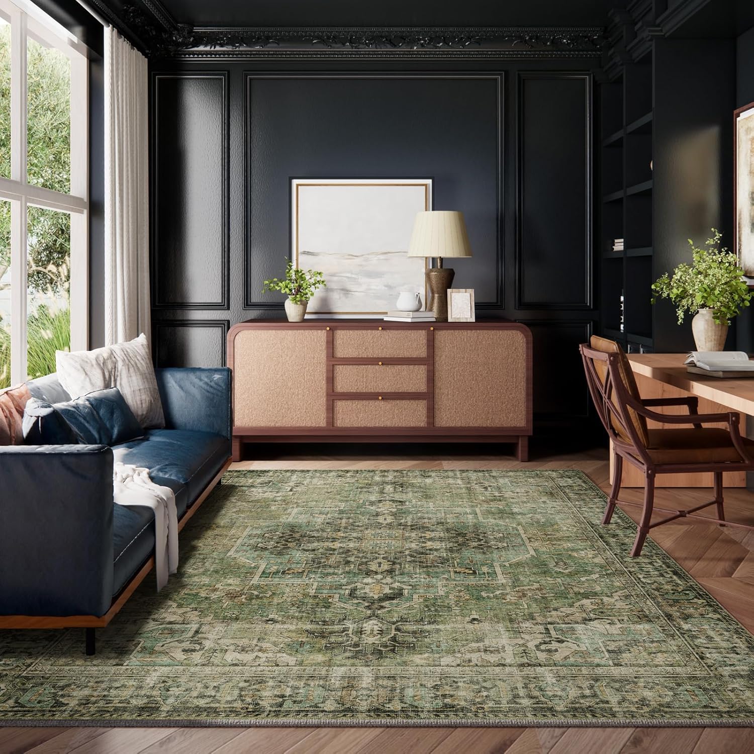 6x9 Area Rugs for Living Room: Washable Bedroom Rug Boho Vintage Rugs Stain Resistant Non Slip Low Pile Soft Lightweight Carpet for Kitchen Dining Room Farmhouse Nursery Kids Room