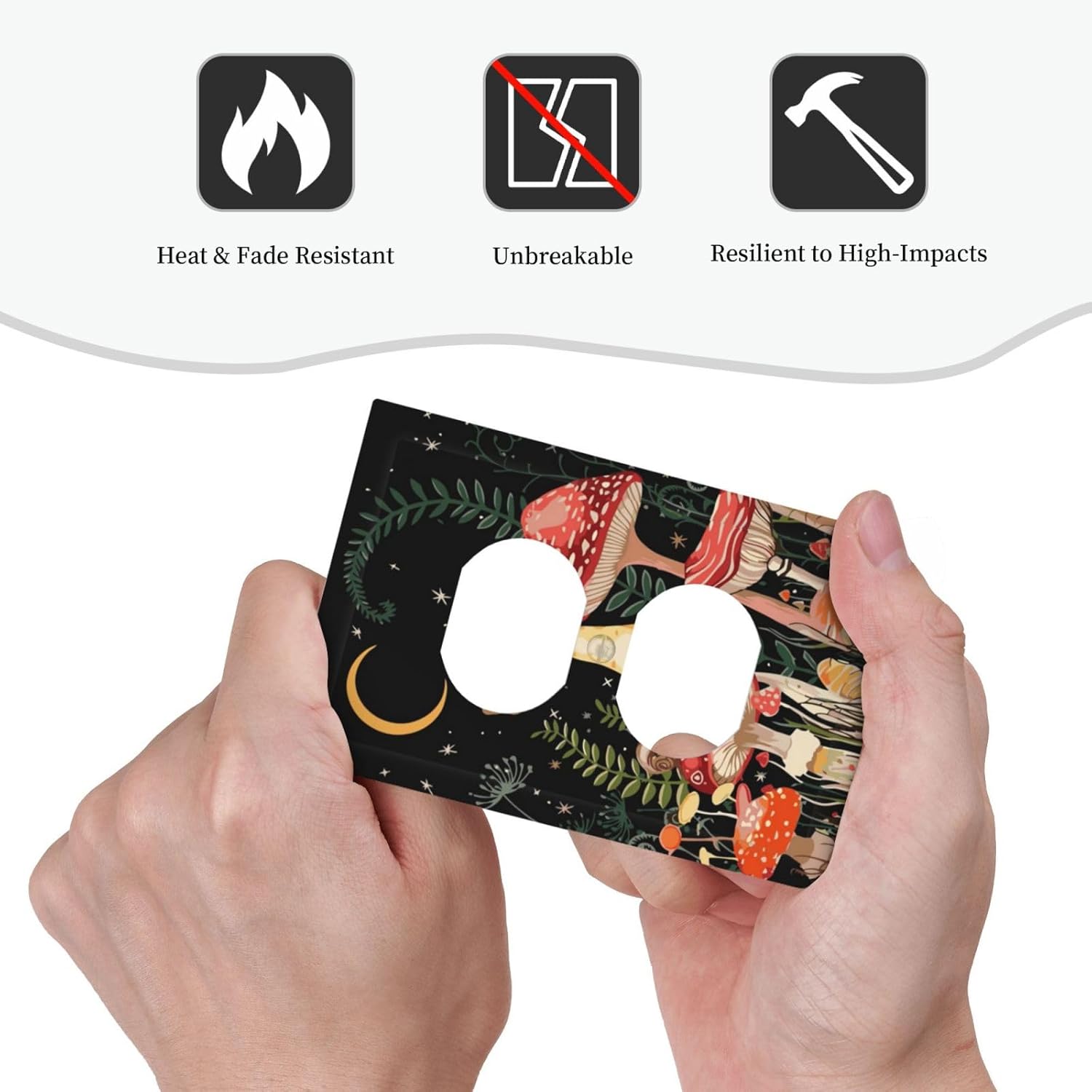 Moon Star Red Mushroom Forest Butterfly Green Plant Outlet Covers 1 Gang Duplex Light Switch Cover Decorative Switch Plates Electrical Receptacle Faceplate Wall Plate for Kids Room Home Decor