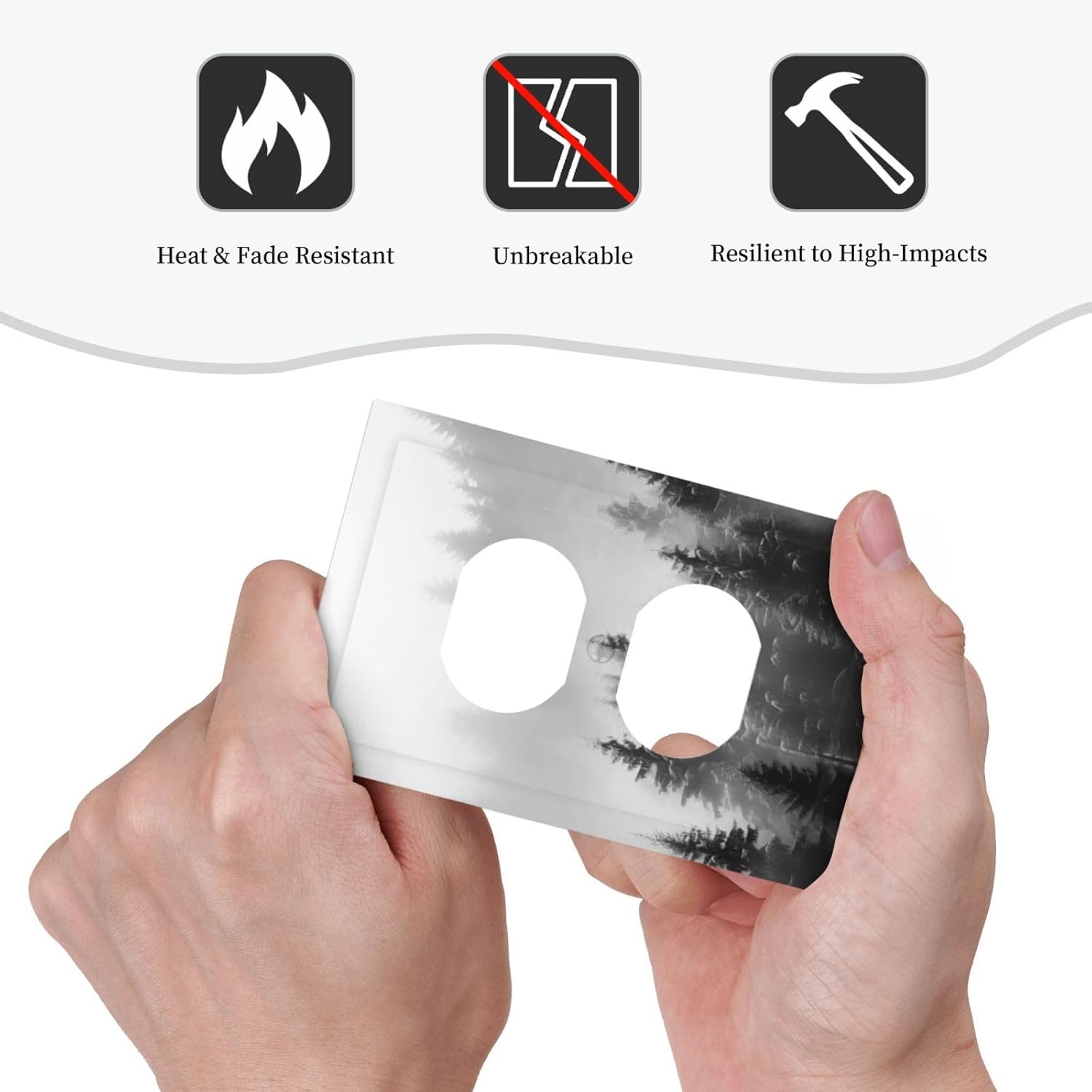 Foggy Forest Natural Scenery Retro Tree Pine Outlet Covers 1 Gang Duplex Light Switch Cover Decorative Switch Plates Electrical Receptacle Faceplate Wall Plate for Bed Room Living Room Decor