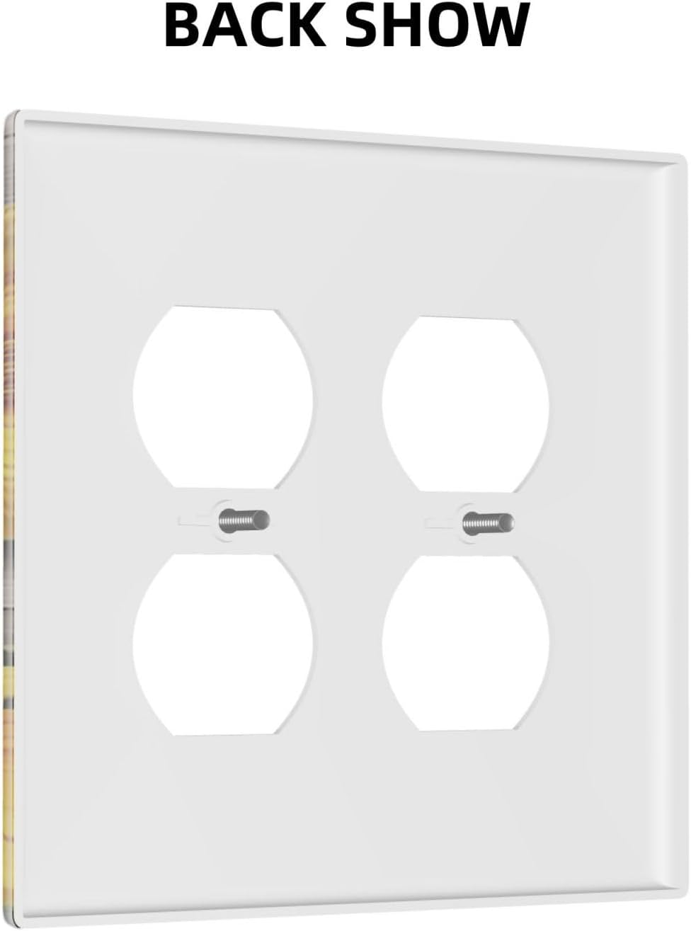 Sunflower Rustic Brown Gray Wood Outlet Covers 2 Gang Double Duplex Decorative Light Switch Covers Electrical Wallplates Socket Faceplate for Farmhouse Home Decor