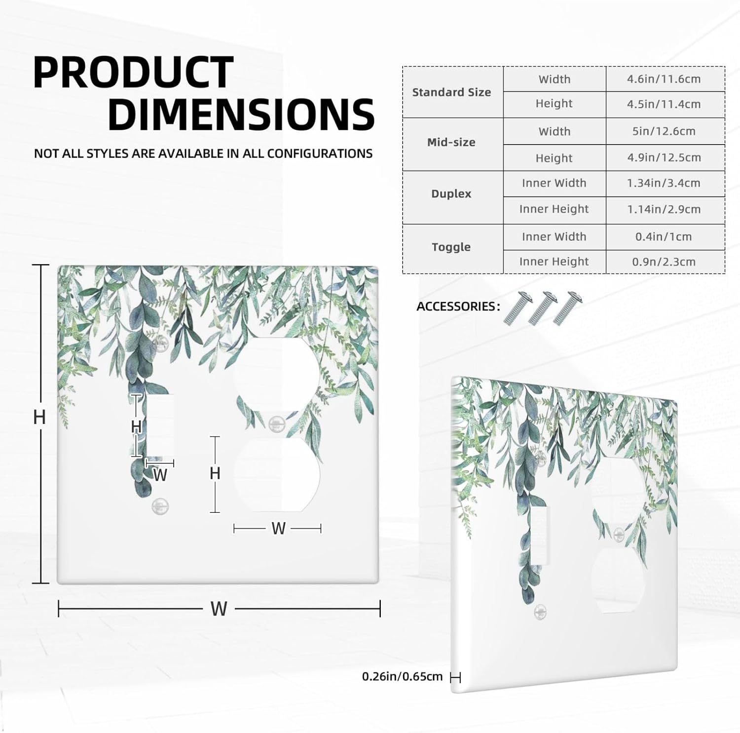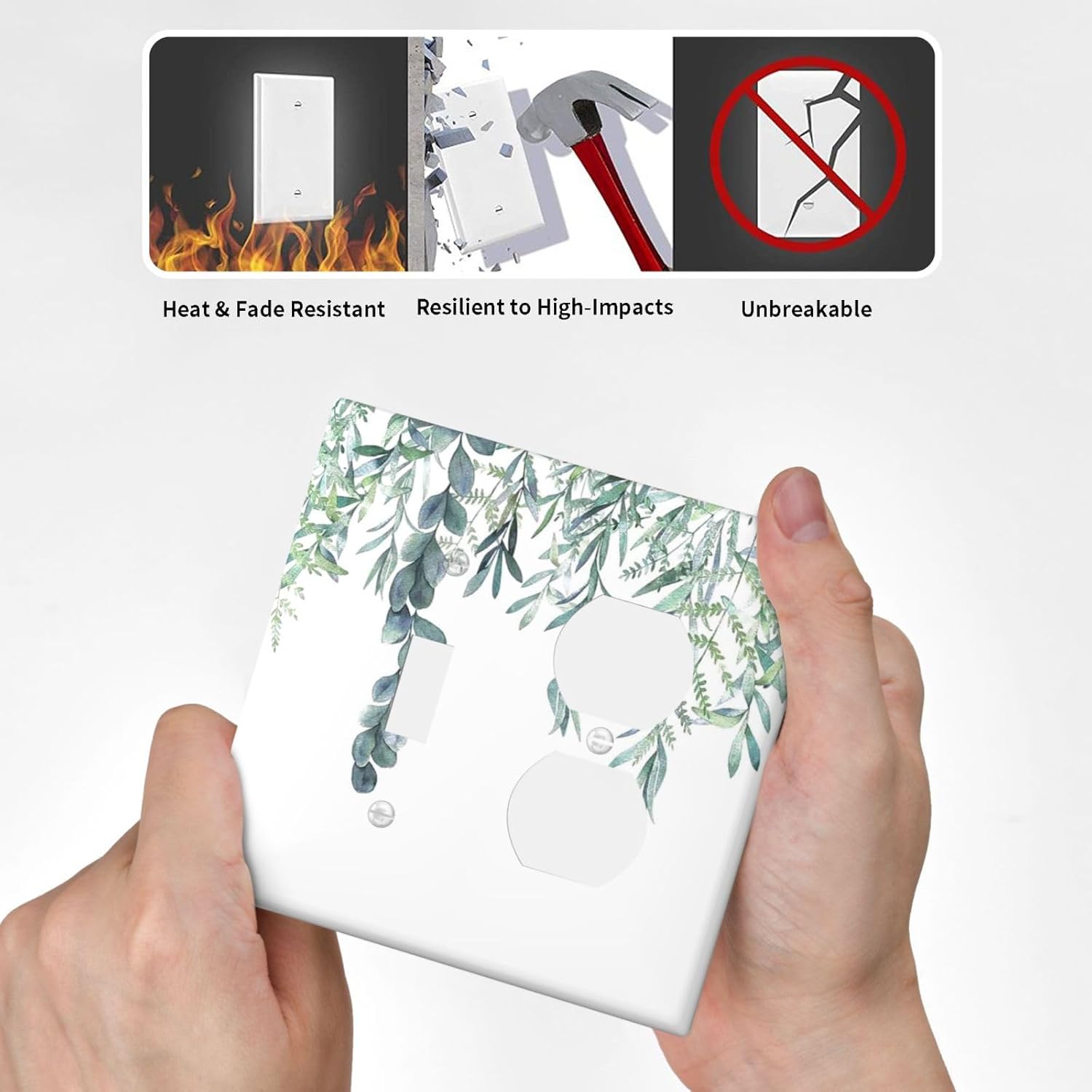 Eucalyptus Leaves Greenery Vine Flowers Simplicity Wallplates 1 Toggle 1 Duplex Switch Plate Electrical GFCI Faceplate Decorative Light Switch Covers for Bed Room Living Room Decor