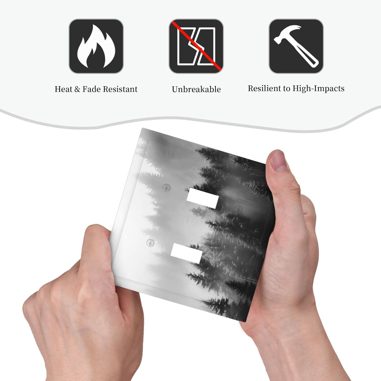 Foggy Forest Natural Scenery Retro Tree Pine Decorative Switch Plates 2 Gang Double Toggle Outlet Light Switch Cover Wall Plate Electrical Faceplate for Bed Room Living Room Decor