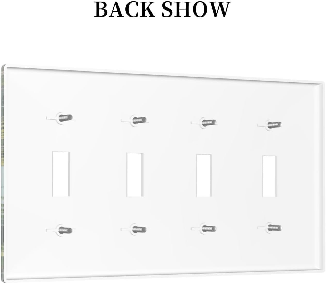 Summer Sky Coconut Palms Trees Green Plants Leaf Light Switch Covers Quad Toggle Electrical Faceplate 4 Gang Wall Plate Decorative Switch Plates for Bed Room Living Room Decor