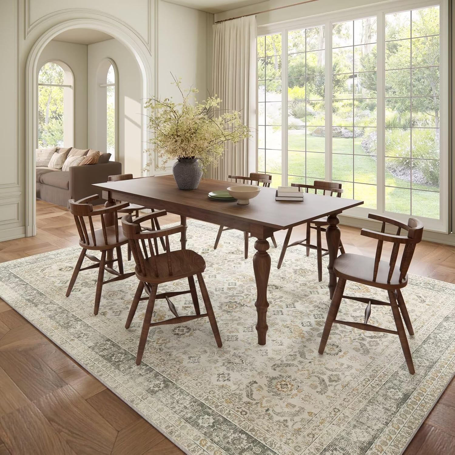 Washable 8x10 Area Rugs for Living Room, Boho Non-Slip Silicone Backing Rugs for Bedroom Dining Room Nursery Office, 0.3" Neutral Oriental Throw Carpet with 0.16" Cushioning Pad, Grey/Multi