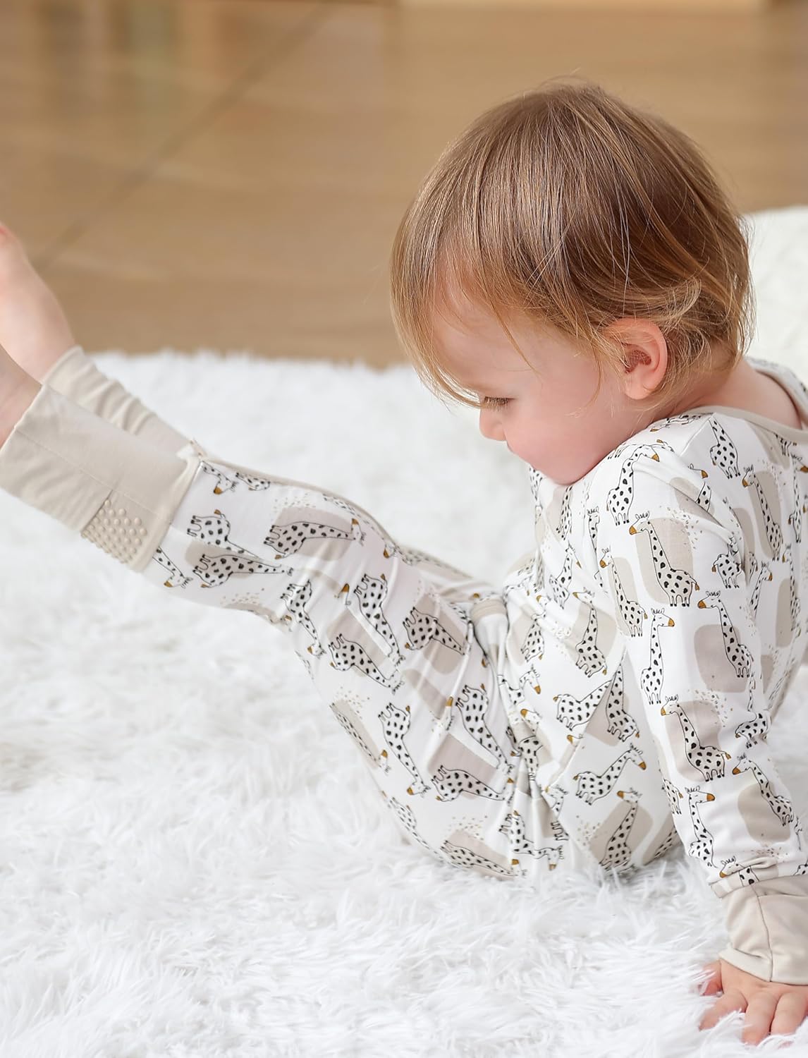 JunNeng 2Pcs Baby Rayon from Bamboo Sleeper with Mitten Cuffs, Footless Zipper Cozy Pjs, Non-Slip Soles Romper