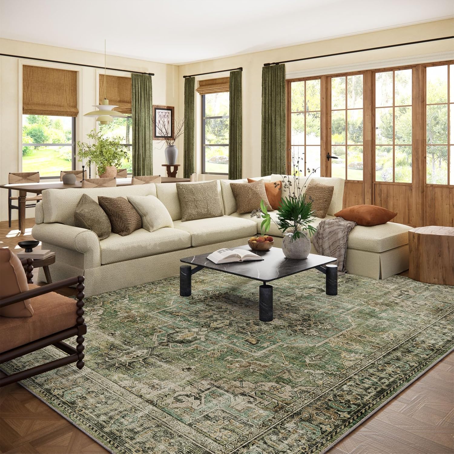 9x12 Area Rugs for Living Room: Washable Bedroom Rug Boho Vintage Rugs Stain Resistant Non Slip Low Pile Soft Lightweight Carpet for Kitchen Dining Room Farmhouse Nursery Kids Room