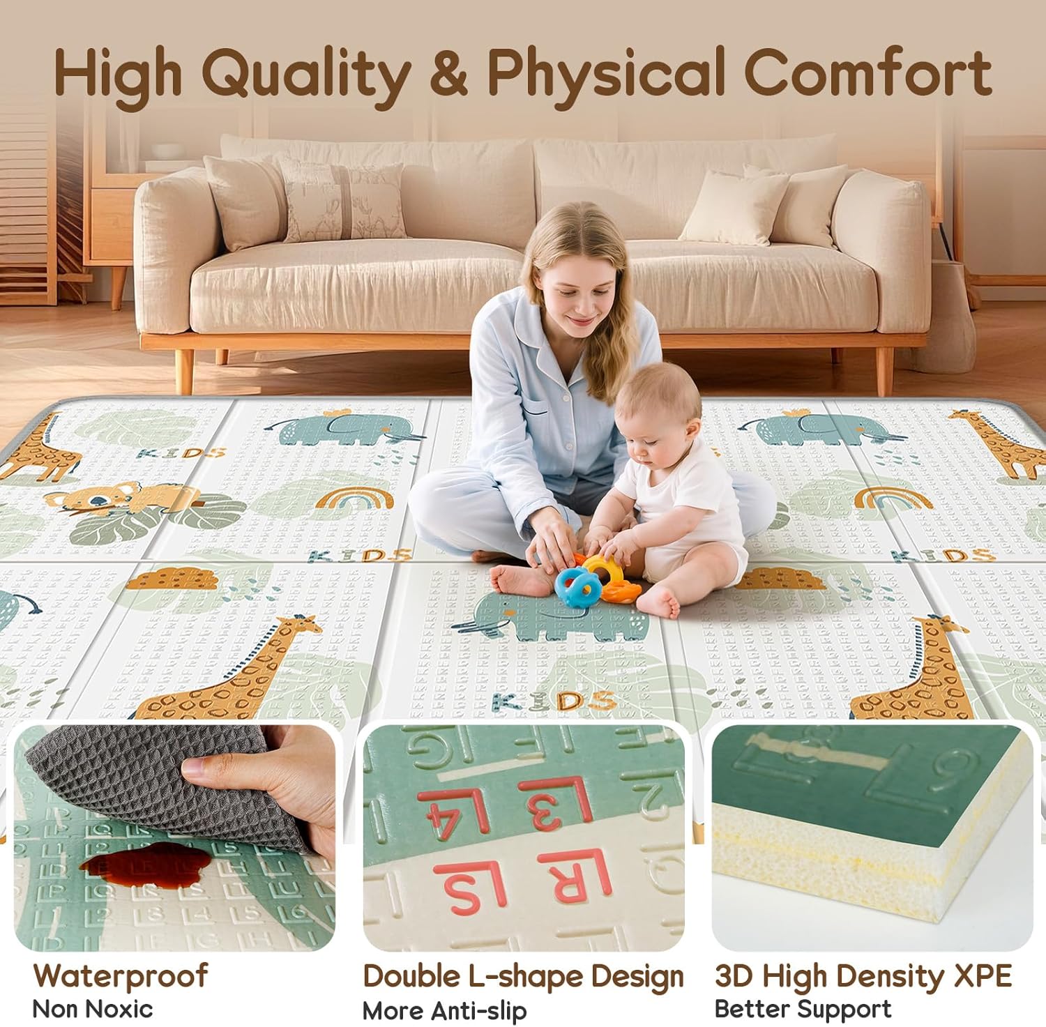 - [Safety First: Non Toxic Play Mat] - Crafted from high-density, non-toxic XPE foam, this baby crawling mat prioritizes your baby's safety. This foldable baby play mat is rigorously tested and certified free from harmful substances like BPA, lead, phthalates, and formaldehyde, ensuring a soft and protective barrier for delicate skin during playtime.