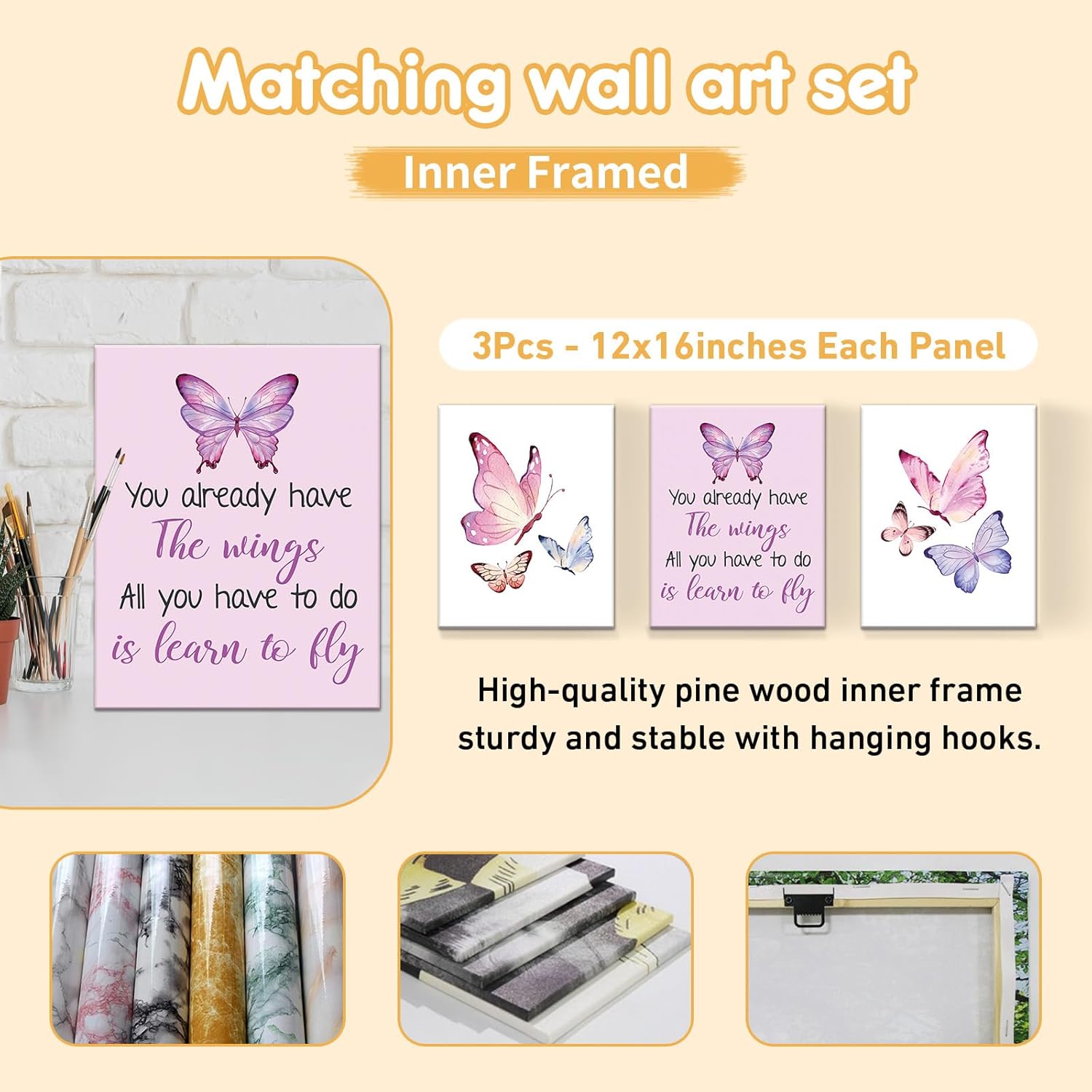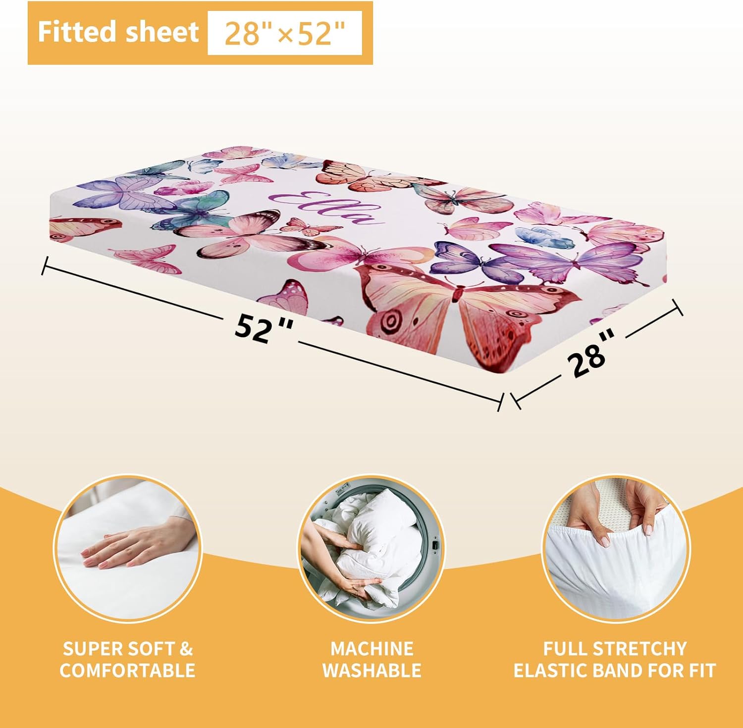 Personalized Baby Bedding Set, 5 Pcs Custom Infants Bedding Set with Infant Name, Double Layer Nursery Crib Set for Girls Boys, Customized Gifts for Toddler Baby Shower, Pink & Purple Butterfly