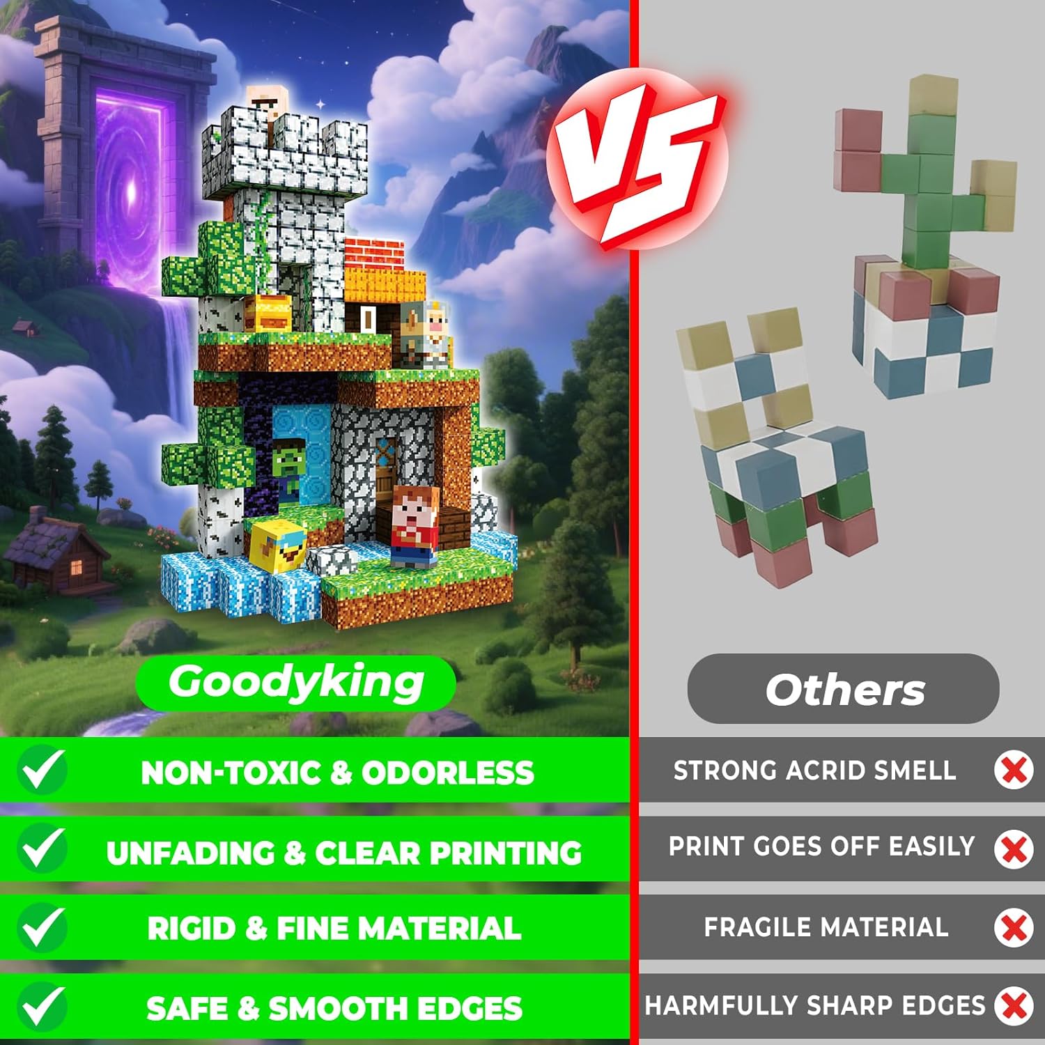 Goody King 200 Pcs Magnetic Blocks Set, STEM Sensory Magnet Toys for Kids Age 3+, Montessori Learning Toy Building Set for Toddlers, Magnetic Cubes Construction Kit Birthday Gift for Boys Girls Kids