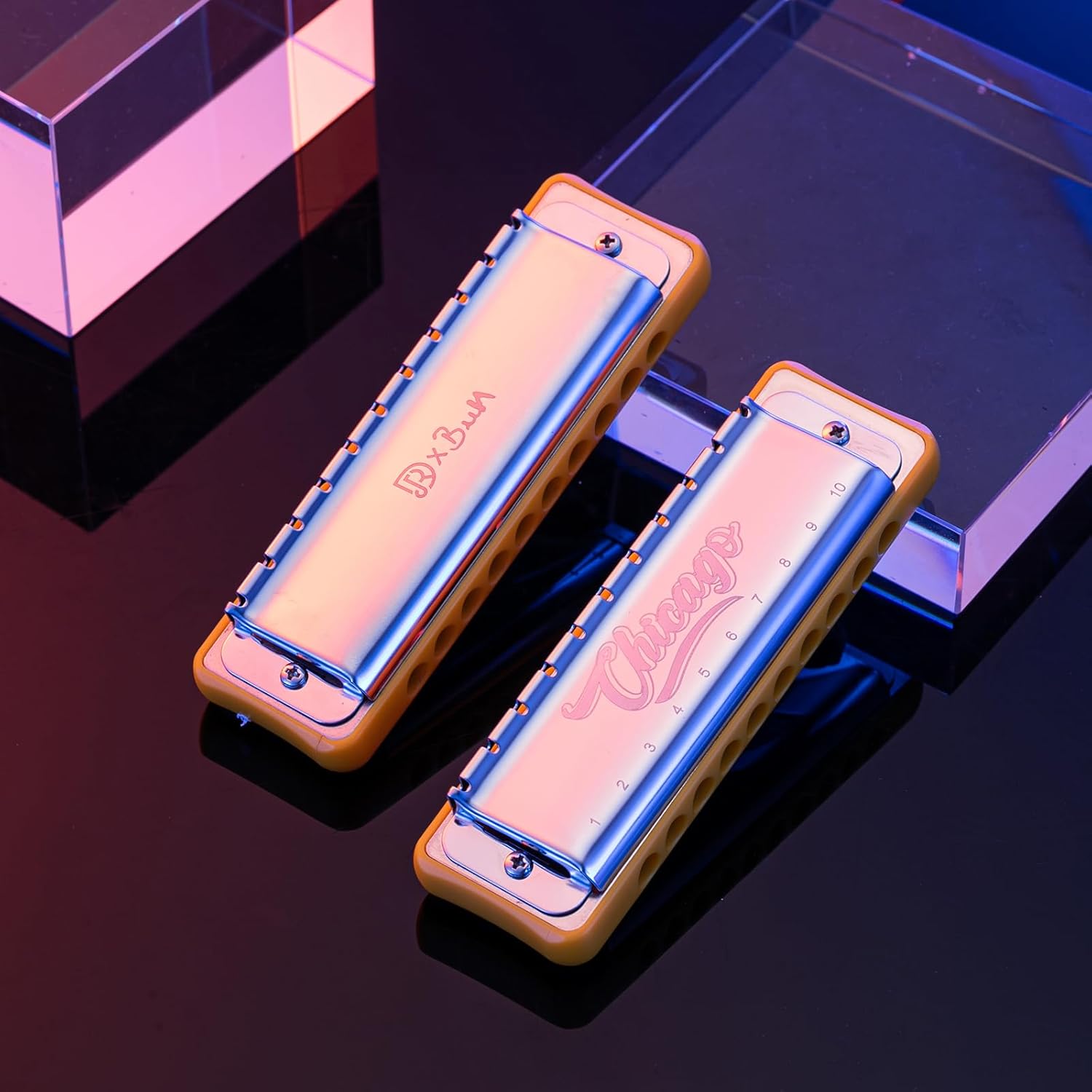 - Premium Sound Projection & Durability: Equipped with a 0.5mm thickened stainless steel cover and hollow design, this harmonica ensures louder volume, even sound distribution, and long-lasting performance. Perfect for both practice and live performances.