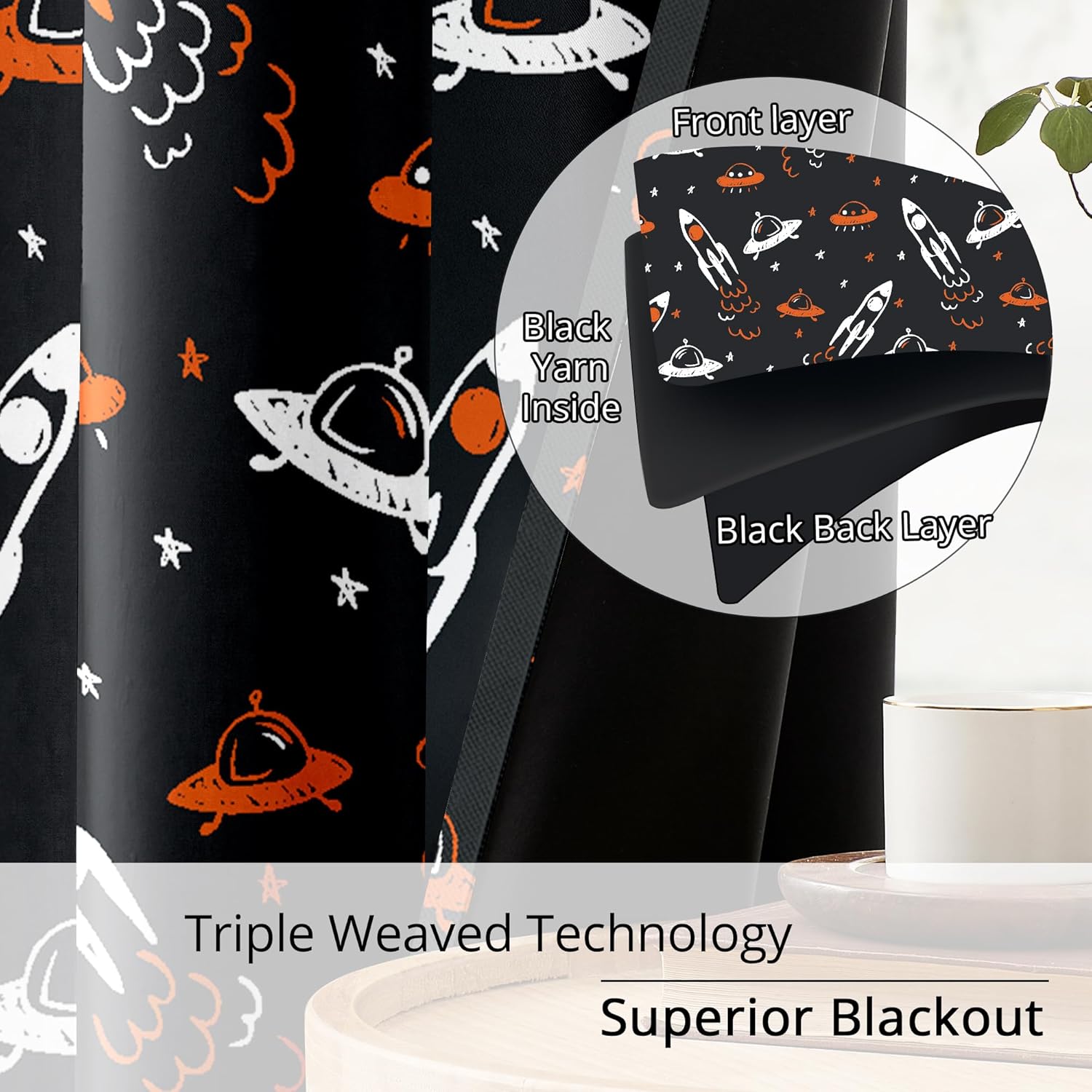- Durable Black Backing: The back of the curtains is solid black, made with yarn-dyed black for exceptional durability and excellent colorfastness under sunlight.