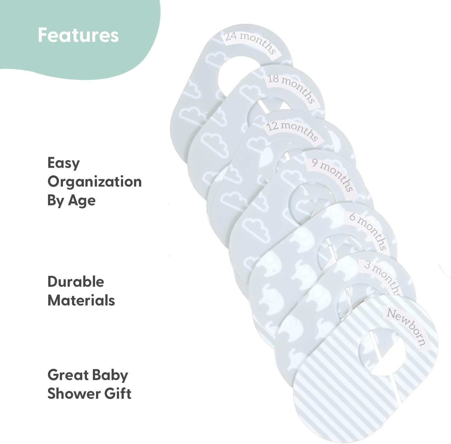 - BEST BABY SHOWER GIFT: Closet Organizers are a must-have in nursery organizers and storage and these are great for parents looking for elephant baby stuff and safari nursery decor