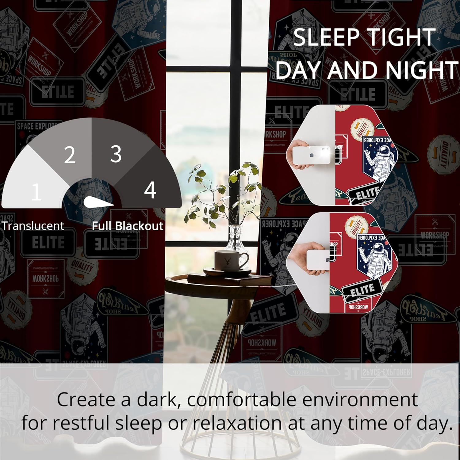 Kids Space Astronaut Blackout Curtains - 100% Blackout, Thermal Insulated, Noise Reducing, Perfect for Kids Room and Nersury, 2 Panels (Space Badge Crew, W52×L84)