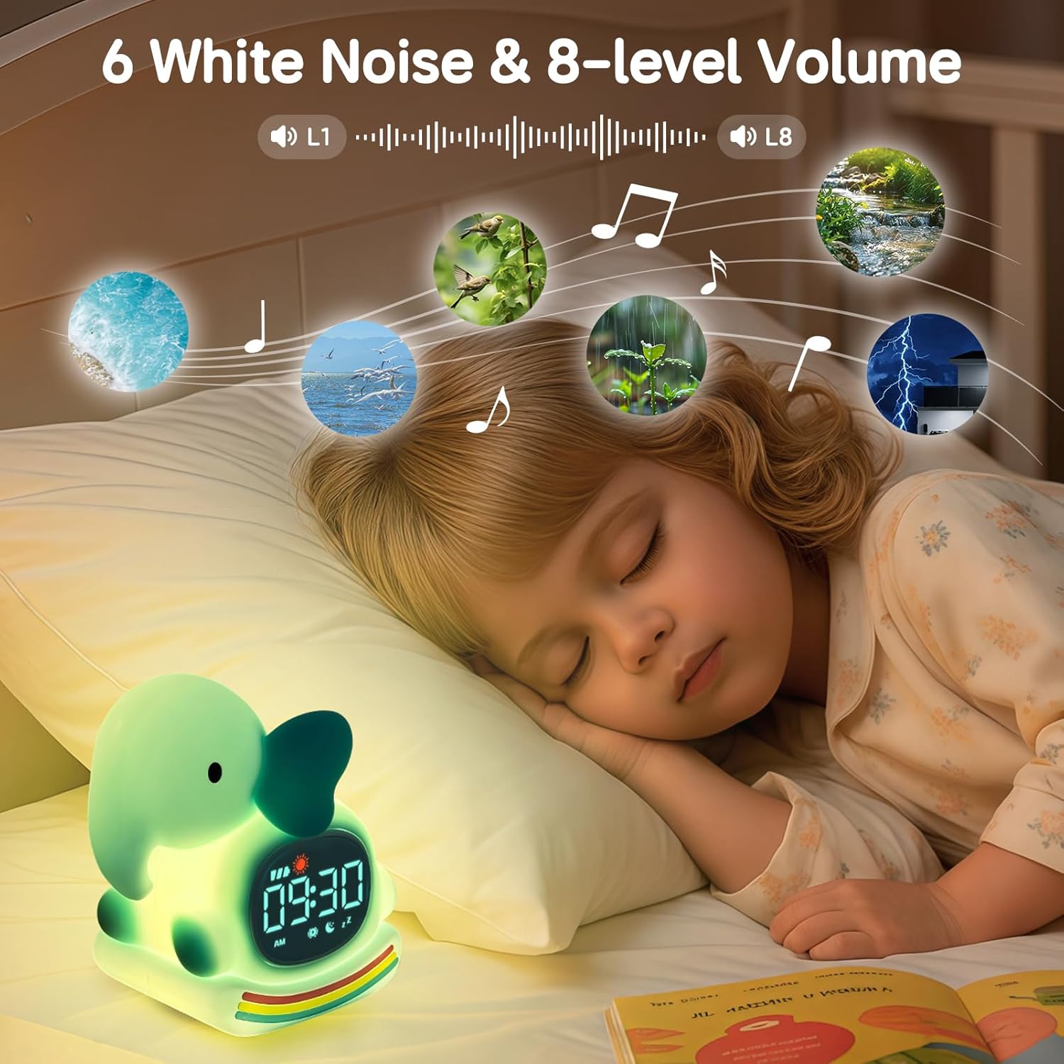 - Gentle Sleep Training: Help kids build healthy sleep routines with smart light cues: red light and white noise for bedtime, soft yellow sunrise light 30 minutes before wake-up, and a green "go" light when it’s time to start the day.