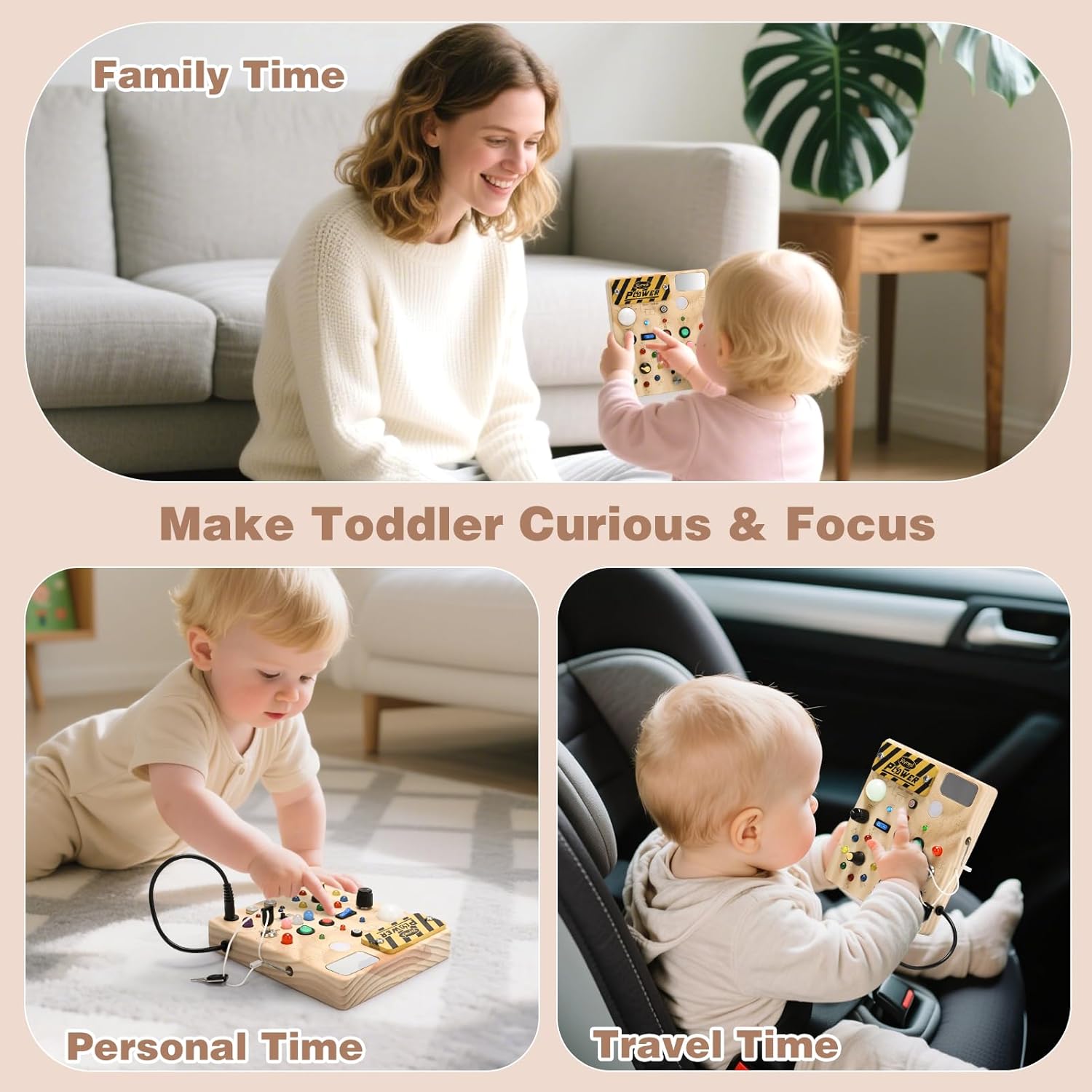 - 【Safe Materials & Safety First】 The montessori switch board is made of solid hardwood (not laminated veneer), which will not peel or splinter, with rounded edges and corners, eliminating the risk of bumping and making it safer for your child to use. At the same time, every detail of the toddler sensory toys has been carefully polished, the structure is stable and built to last, and the montessori toys can withstand frequent operation, long-term accompaniment, accompanying the child's growth.
