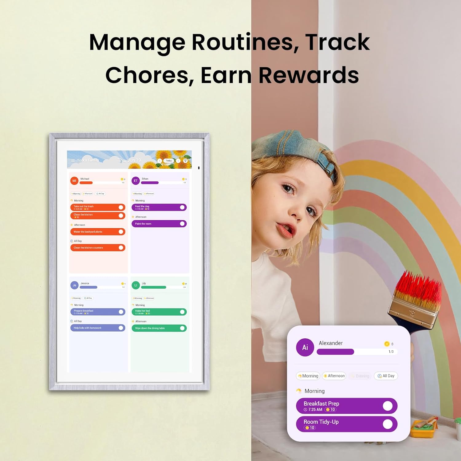 - Interactive Chore Chart & Routine Planning — Powered by our self-developed ApoloSign Calendar system—assign tasks, track with color codes, motivate kids with a rewards system, and manage grocery, shopping, or wish lists from the Calendar or Mobile App.
