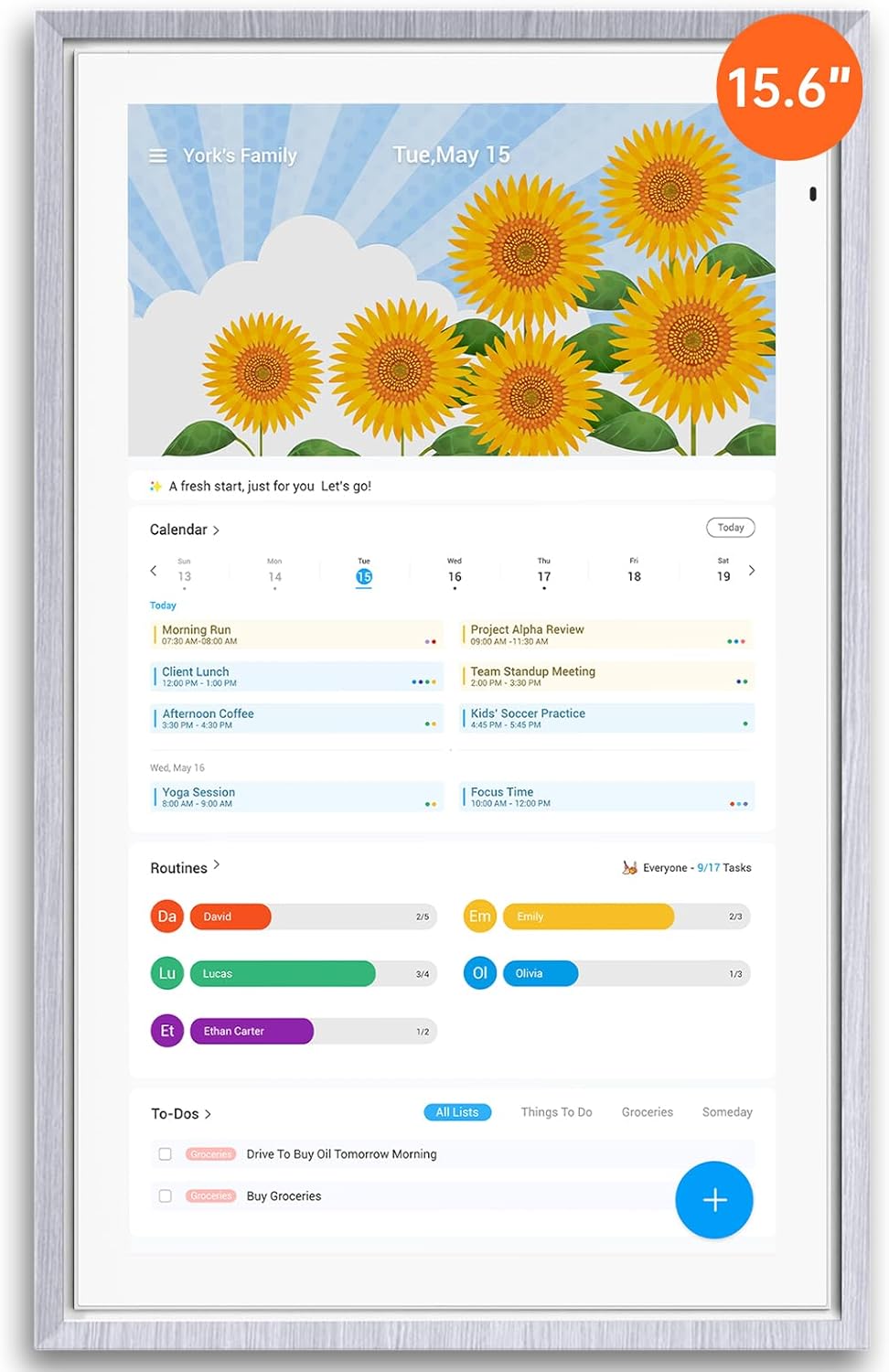 ApoloSign 15.6-inch Digital Calendar: Dual Mode Calendar with Google Play & Multi-calendar Sync, Electronic Planner & Chore Chart, Smart Touchscreen, Interactive Display for Family Schedules (Gray Wood, 15.6")
