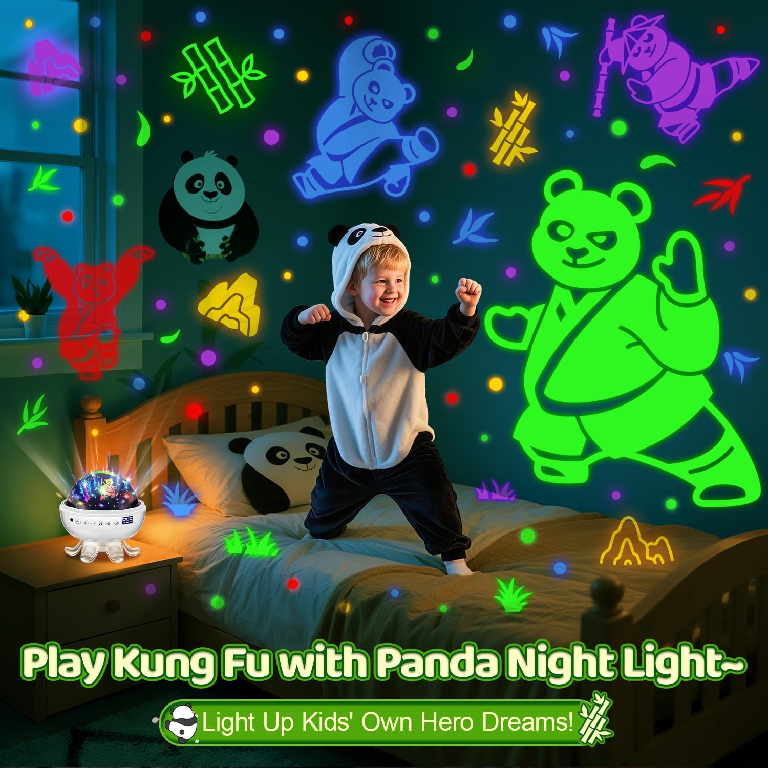 - 【3 HD Films Switch in 3 Seconds】This panda gifts, panda toys comes with 3 HD films—Panda& Patrol Team& Starry Moon. 3 films of kids night light projector night light are high-end, producing clear and vivid projections. With 3 themes included, kids can freely journey through a richly varied fantasy world--afterall,switch slides only takes 3 seconds. Giving the portable sound machine baby to kids is like gifting them a glowing dream: play kung fu with light heroes; embark on adventures with squad, or roam the cosmos~ Join thousands of satisfied customers with this 4 year old boy toys for 2 year old boy toys for 6 year old boys, kids toys boys 3-5, 7 year old boy gifts for 2 year old boy!