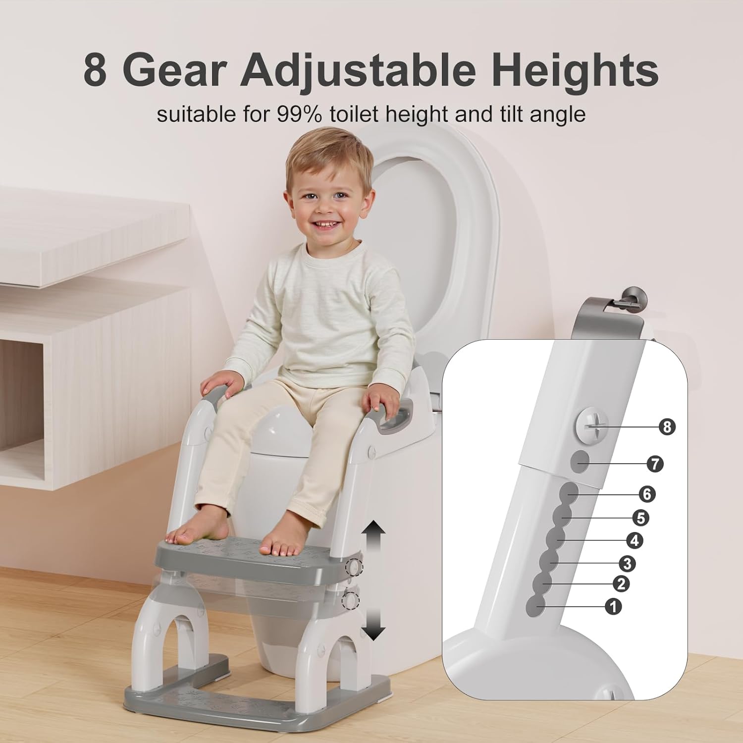 - 【8 Adjustable Height】: Our potty seats for toddlers has 8 adjustable heights which ensures that it fits 99.99% of all toilets (like V/U/O shape. NOT for square) and provide a perfect fit on any surface. Its lightweight design make it easy for children to carry on their own, the foldable design allows it maximize the space-saving when not in use and keep everything in order.