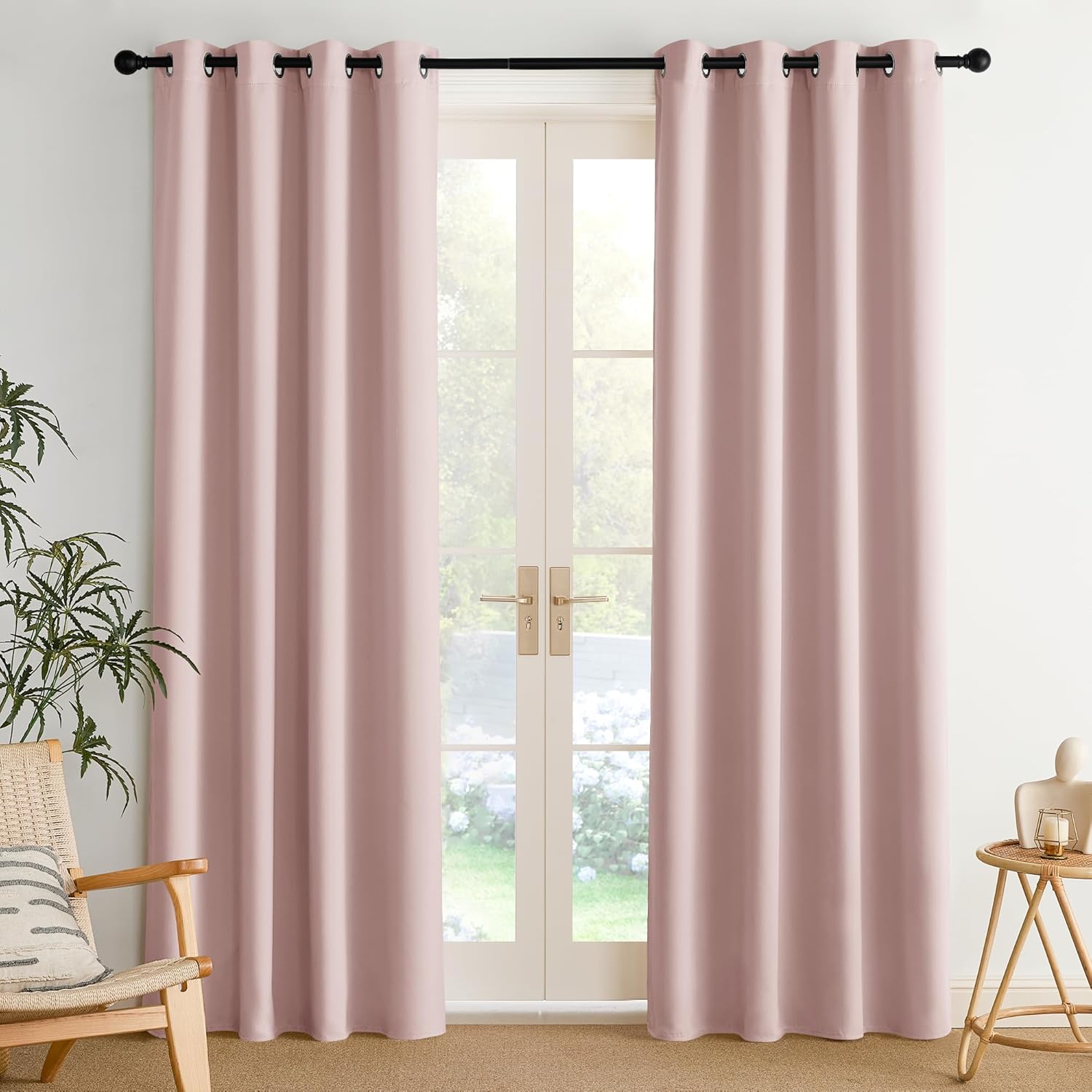 NICETOWN Blush Pink Room Darkening Curtains for Bedroom 84 inches Long 2 Panels, Thermal Grommet Curtains for Living Room, Noise Reducing Privacy Window Treatment for Nursery, Laundry Patio, W52