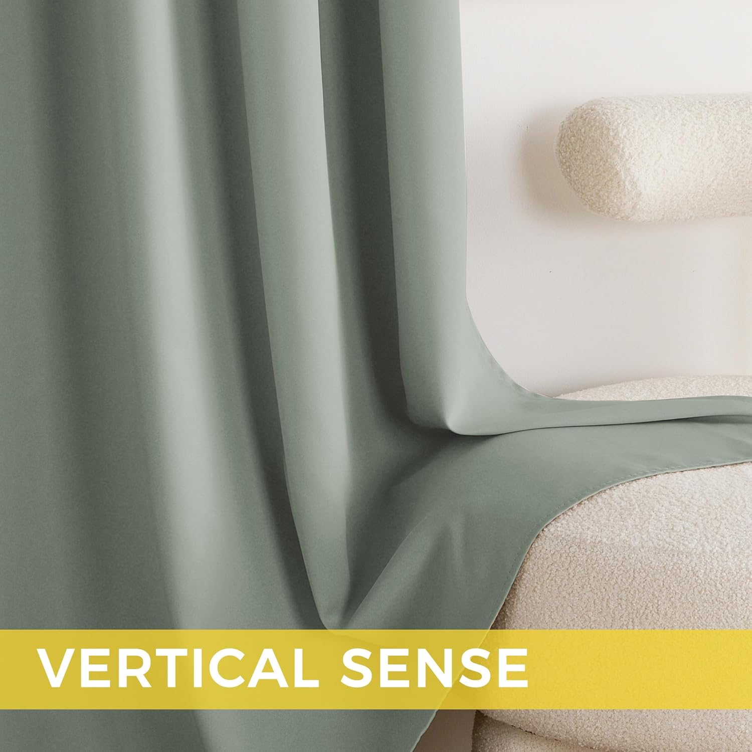 NICETOWN Sage Green Room Darkening Curtains 84 Inches Long 2 Panels for Living Room, Bedroom, Nursery Summer Thermal Insulated Blackout Drapes Grommet Noise Reducing Window Treatment, W40