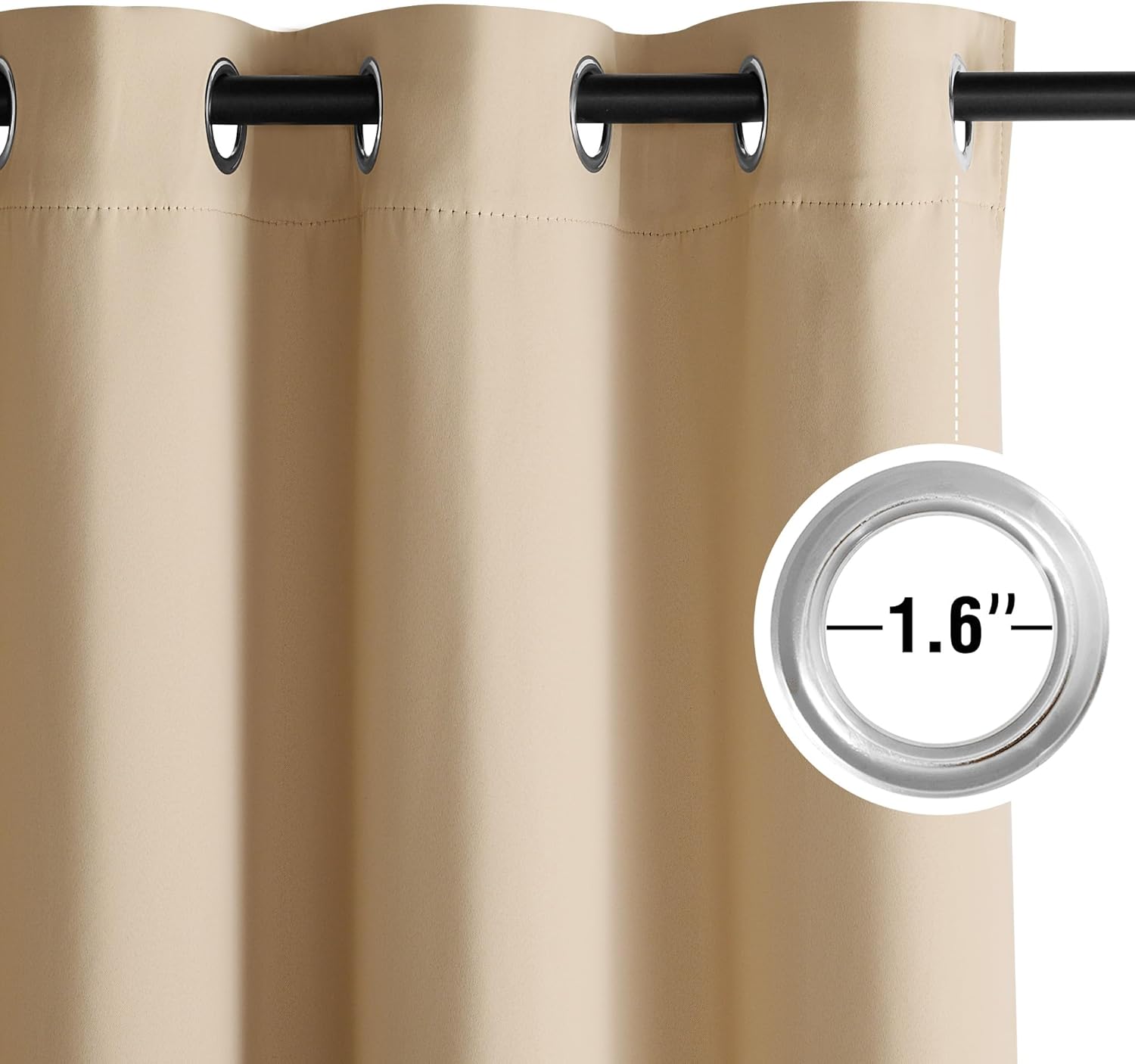 NICETOWN Beige Room Darkening Curtains 63 Inches Long 2 Panels for Living Room, Bedroom, Nursery Summer Thermal Insulated Blackout Drapes Grommet Noise Reducing Window Curtains, W40