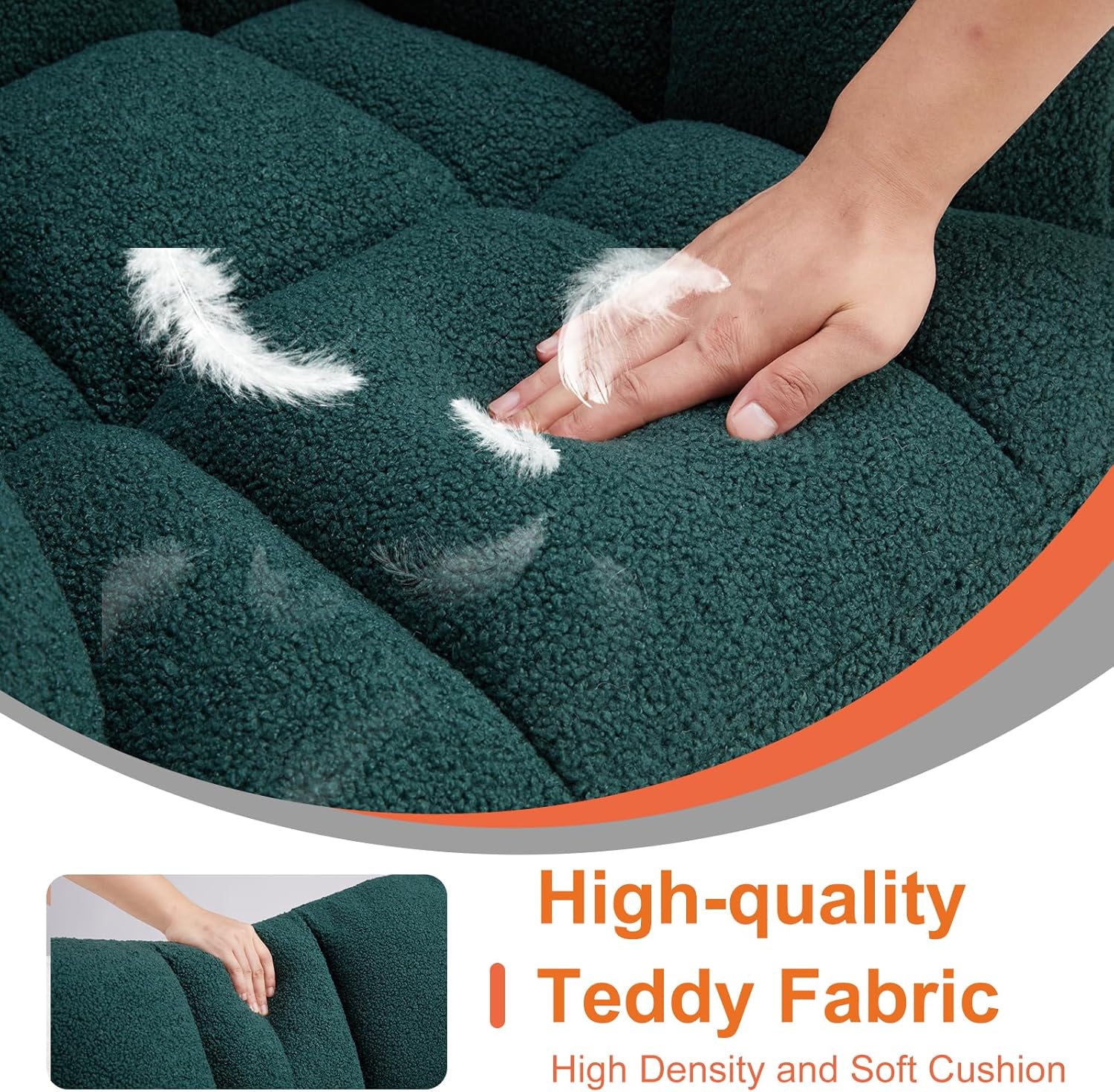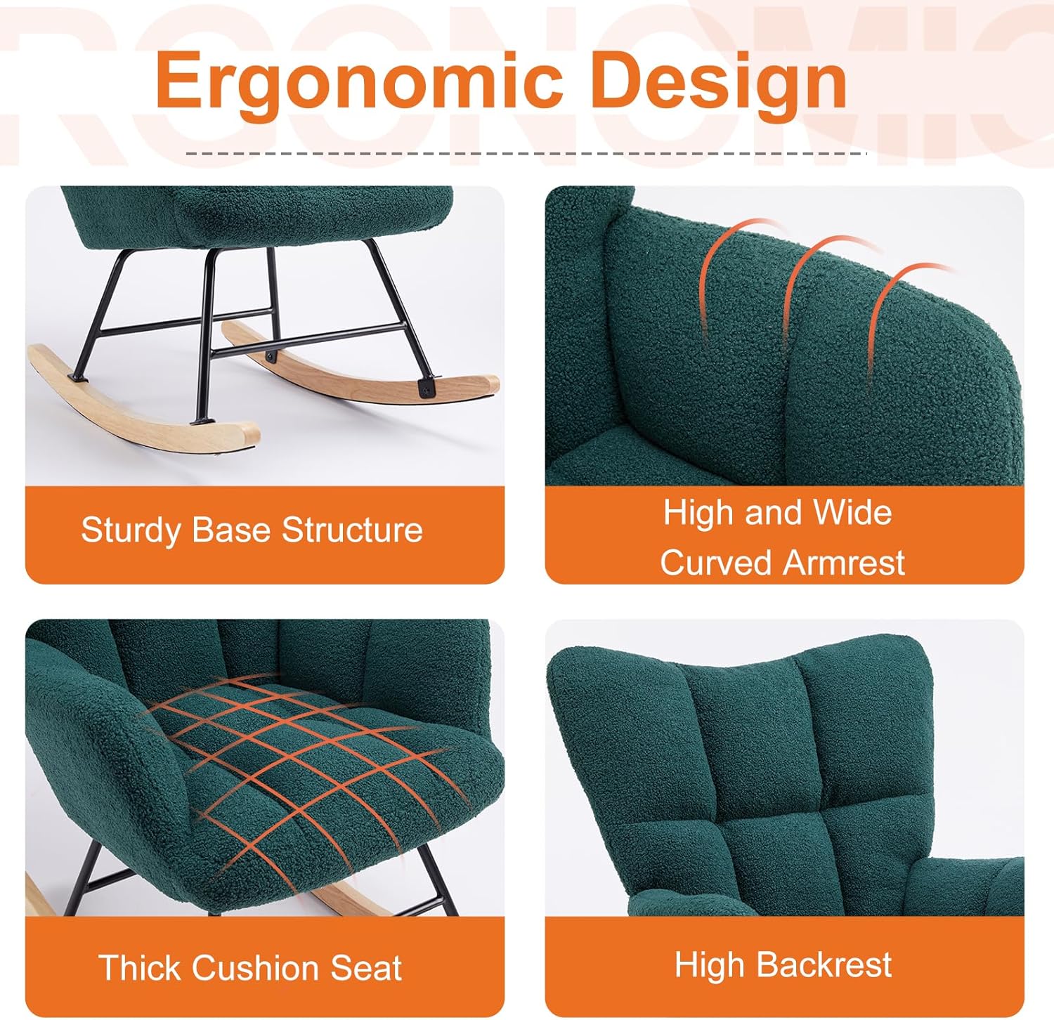 Sweetcrispy Rocking Chair Nursery, Teddy Upholstered Glider Rocker with High Backrest, Reading Chair Modern Rocking Accent Chairs Glider Chair for Nursery, Living Room, Bedroom, Deep Green