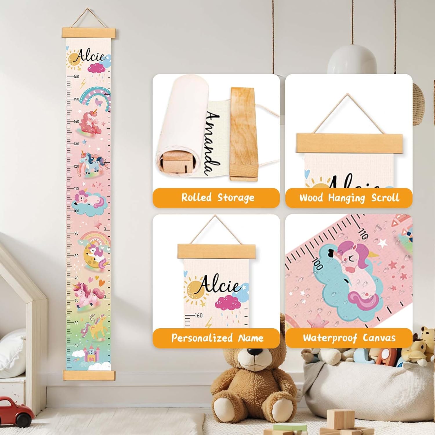 Personalize Name Growth Chart for Kids, Unicorn Kids Growth & Measuring Chart, Growth Chart for Wall, Height Measure Wall Chart Bedroom Nursery Wall Decoration,Playroom Essentials