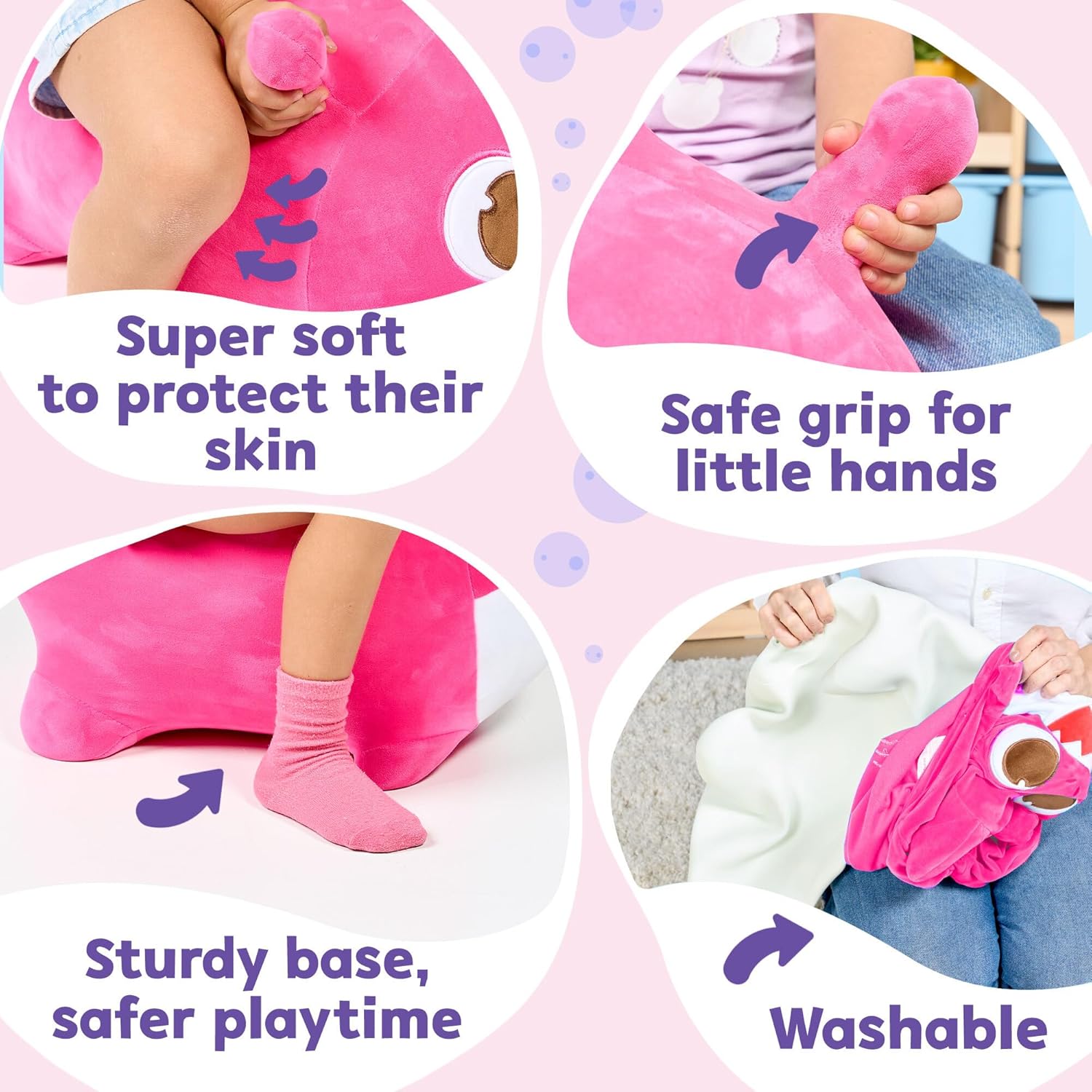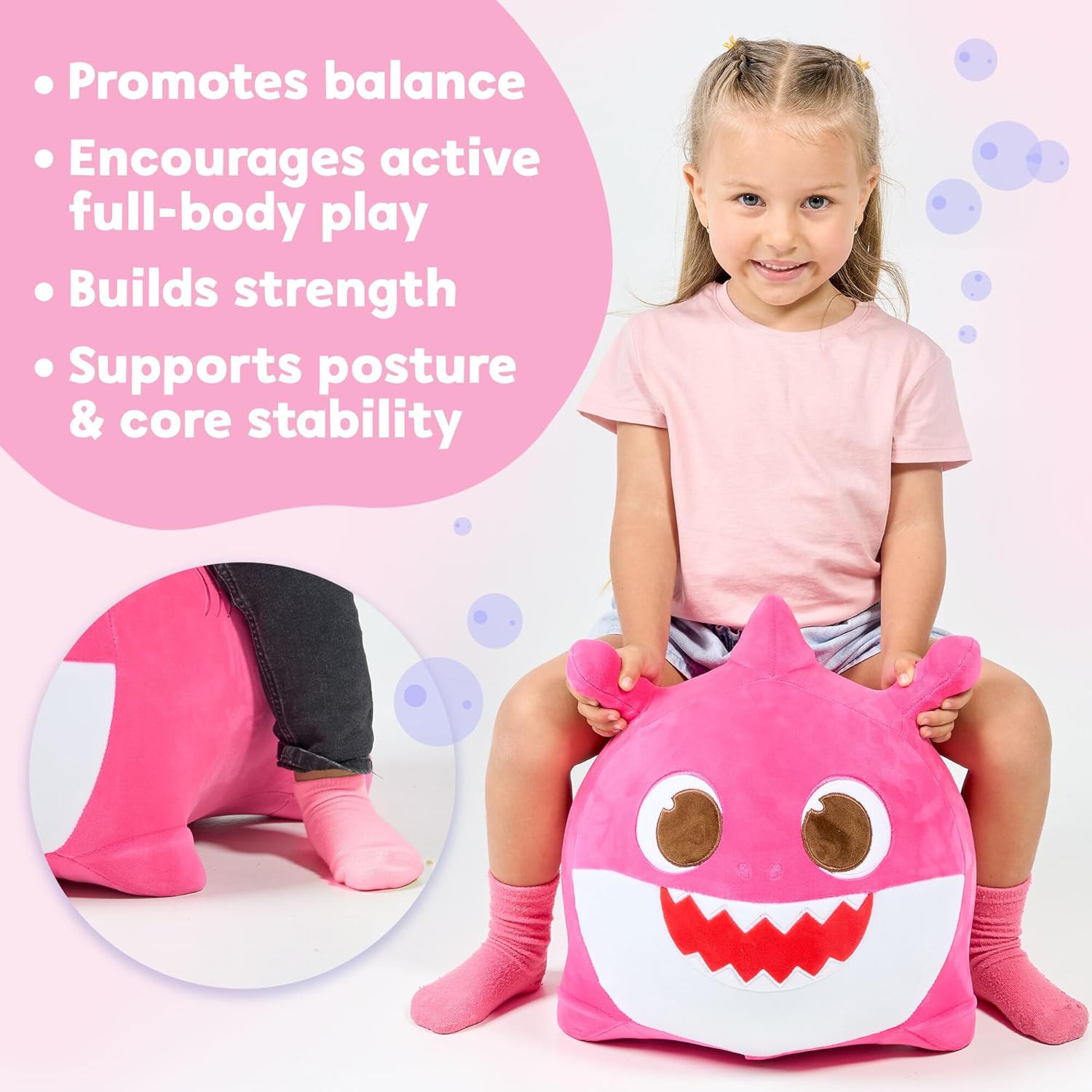 - Soft Plush Design for Hopping Fun - With its cozy bouncy plush cover, this Mommy Shark pal is fun to cuddle and ride. Little boys and girls can enjoy endless energy release while jumping, hopping, and riding indoors or outdoors, making it a fun and engaging toy choice for active play.